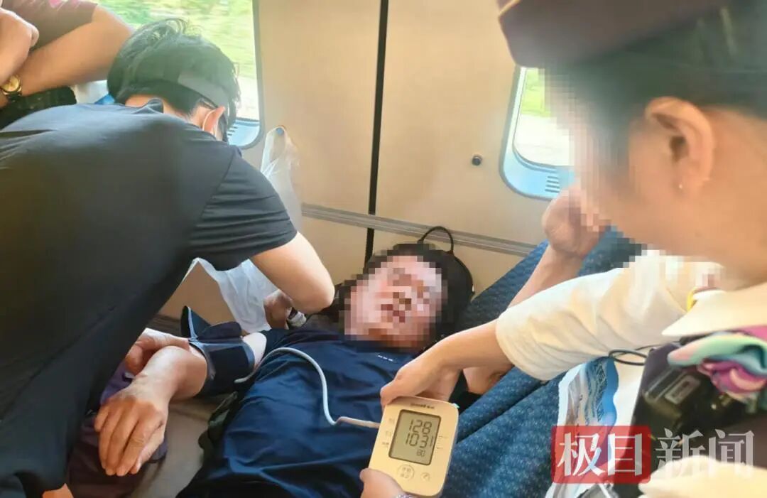 聽到廣播的瞬間,王強沒有片刻遲疑。穿行在行駛的列車中,他一手扶靠座椅保持平衡,以最快速度趕往現場。與此同時,荊門市中心醫院麻醉科醫生黃任飛也聞訊趕來,兩位素不相識的醫生在危急時刻形成默契的救援搭檔。