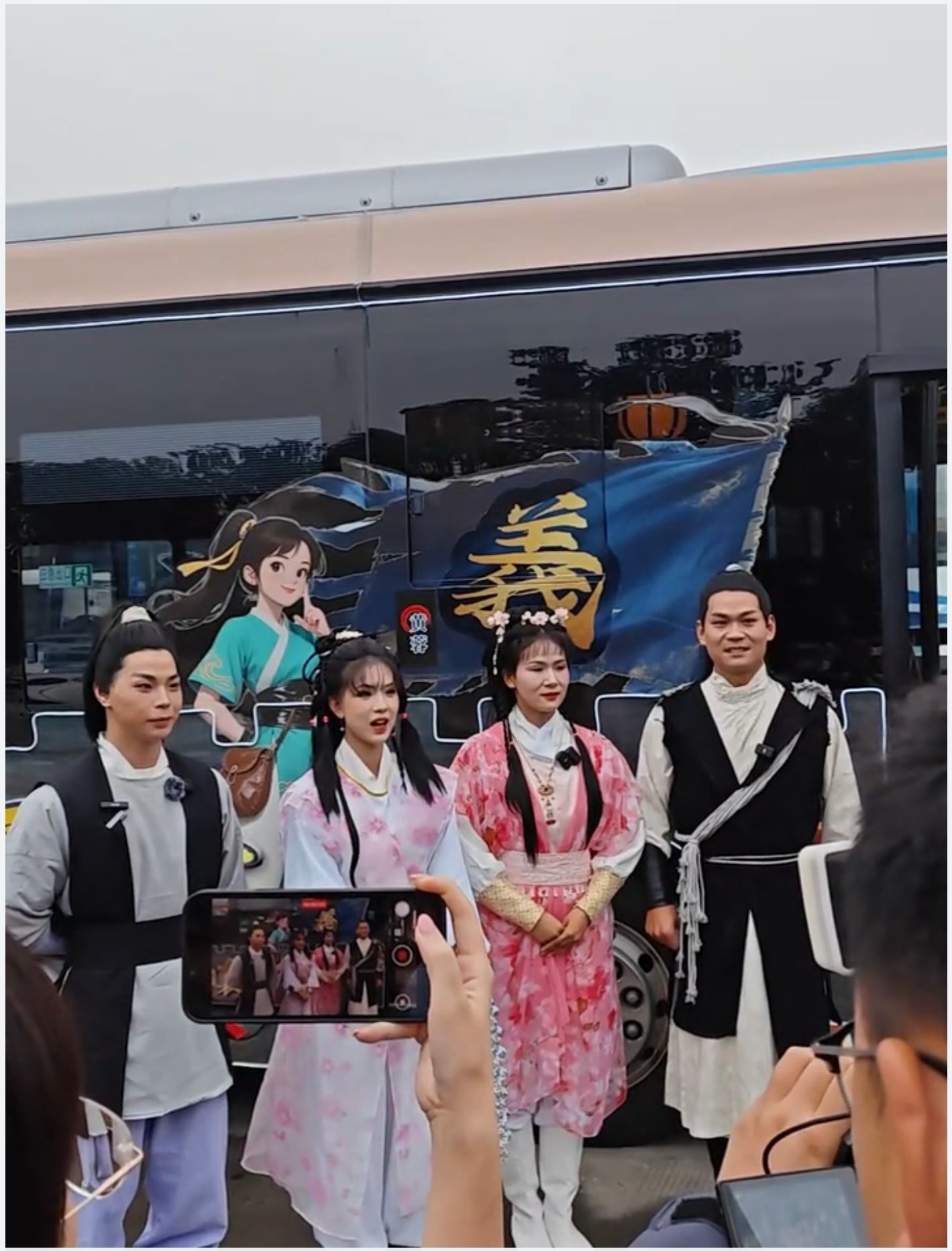 國慶長假期間,“俠義襄陽”主題公交車亮相古城襄陽。駕駛員們裝扮成黃蓉、郭靖、洪七公等人物,帶領游客們暢游景點景區。車廂內部的設計也融入了金庸武俠故事元素,向來自四面八方的游客,展現了襄陽這座古城的俠義風骨。
