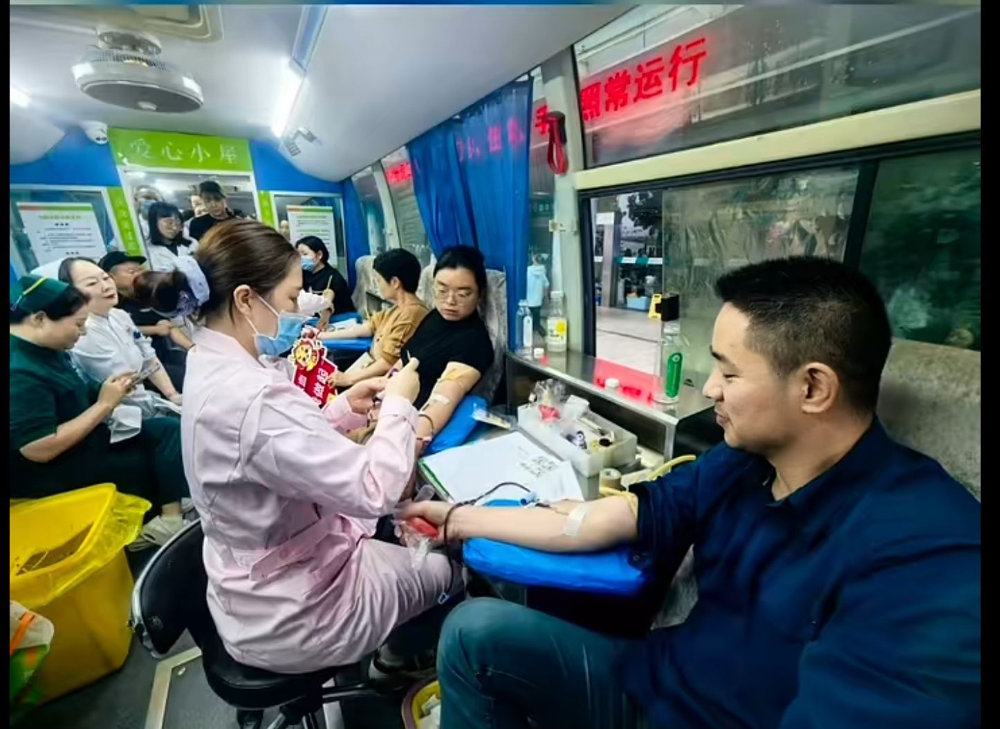 長假期間。市區各愛心獻血屋內暖意涌動,不少志愿者專程趕來,用無償獻血的方式,度過這個特別的假期。