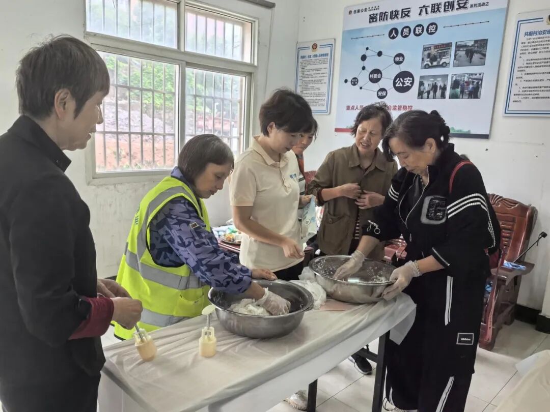 ▲李俊(中)和居民一起做月餅。通訊員 史敏 攝
