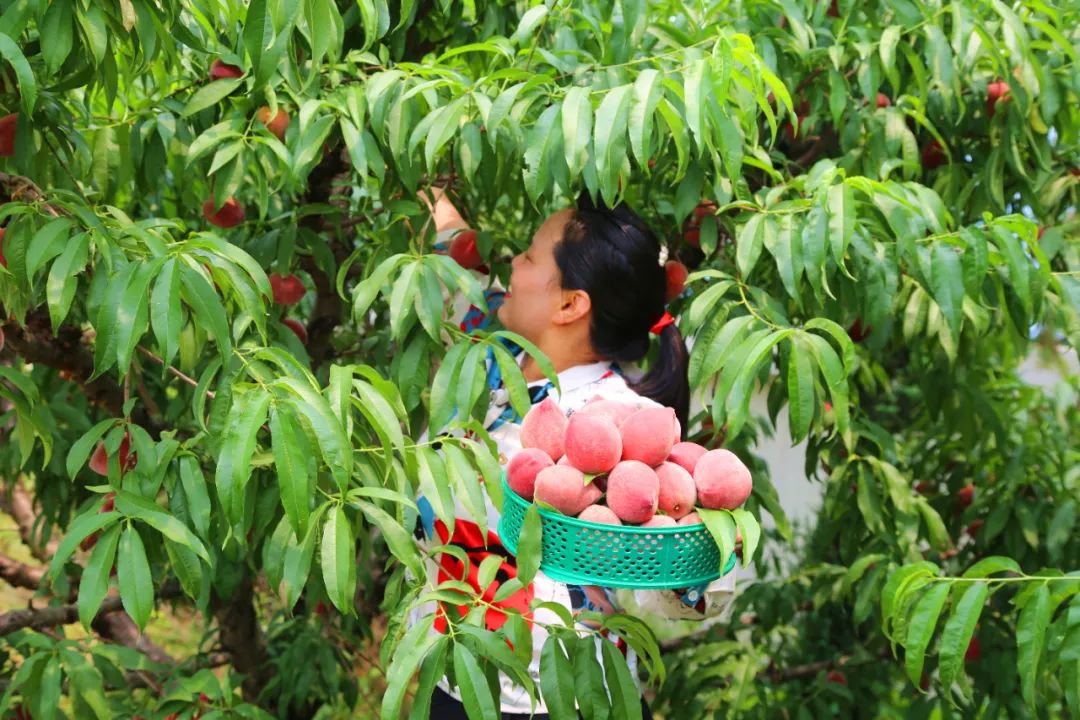嚯!這漫山遍野的桃樹,簡直是現實版的“蟠桃盛會”!(猛咬一口飆出桃汁)這桃子!可太絕了!科技興農真正讓鄉親們過上了甜滋滋的日子!!