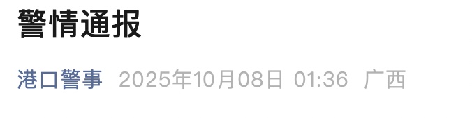 10月8日,防城港市公安局港口分局發(fā)布警情通報(bào),全文如下: