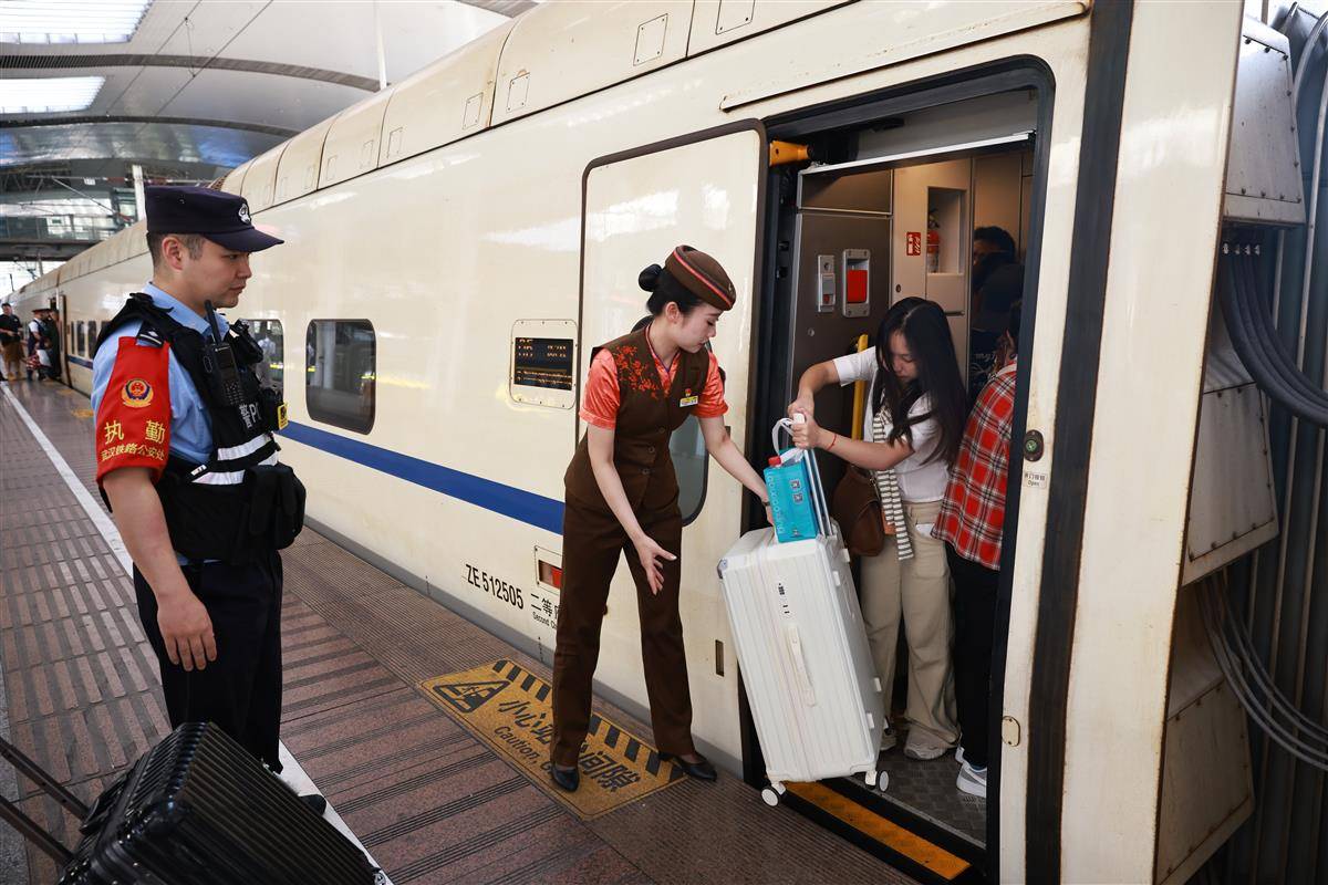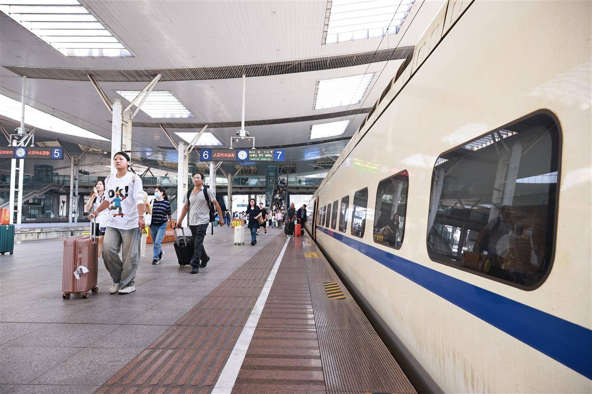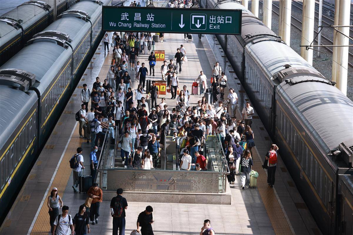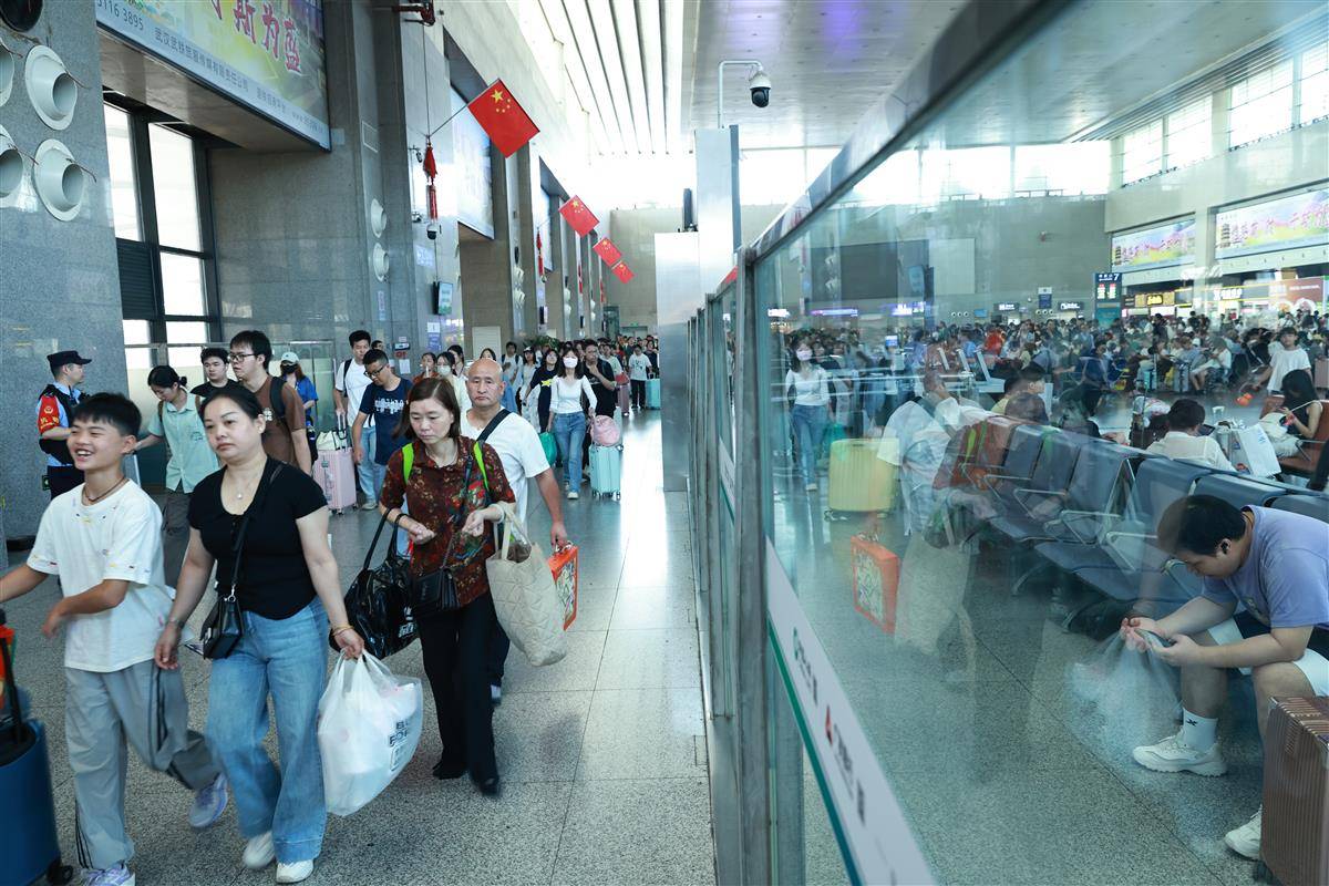 10月7日,武昌火車站內旅客有序乘車、抵達。當日,武漢鐵路各大車站迎來返程高峰,僅武昌站就發送旅客6.4萬人次、到達旅客10.8萬人次。為保障旅客平安返程,武漢鐵路公安以“主動警務、預防警務”理念為指引,通過“一站一方案”精準舉措堅守崗位;武漢客運段則聚焦旅客出行需求,將精細化服務與動態運力調配相結合,共同為國慶假期運輸安全順暢保駕護航。(湖北日報全媒記者 魏錸 通訊員 陳誠 周赟玥 攝)