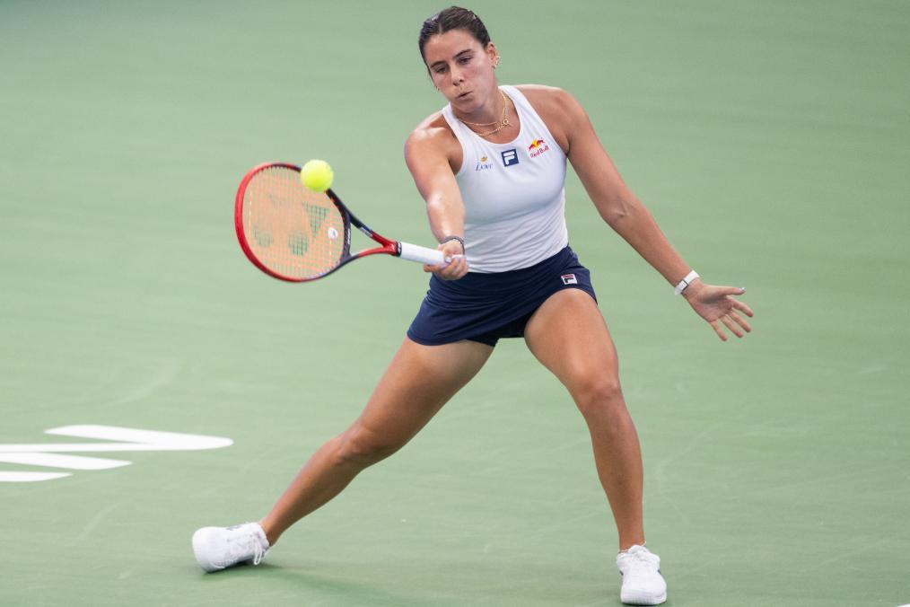 10月7日,納瓦羅在比賽中回球。