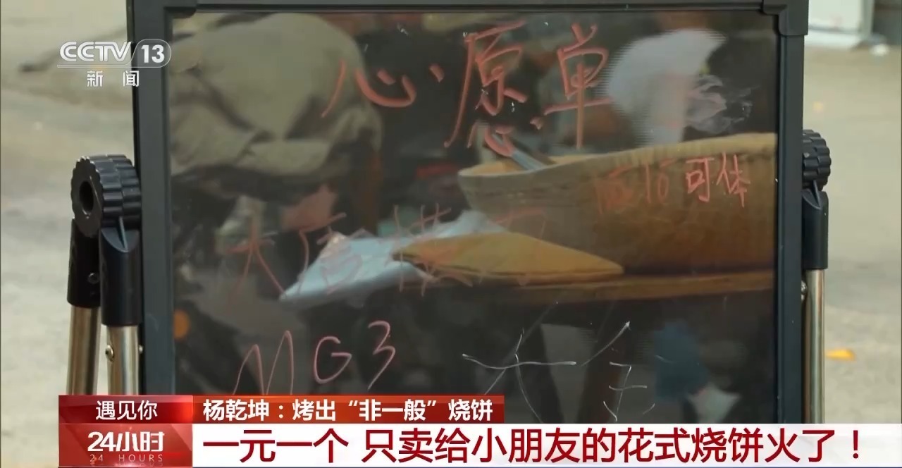 在燒餅攤一旁,楊乾坤還留了塊小黑板,專門供小朋友們手寫他們想要的燒餅造型。滿足小顧客們的心愿,也是楊乾坤每天最上心的事兒。