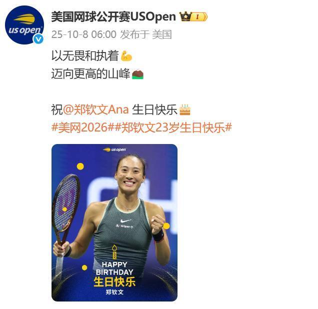 10月8日是中國網球金花、湖北姑娘鄭欽文的23歲生日。四大滿貫先后發來賀電,祝福鄭欽文在經歷傷情后能順利康復,“風雨過后更見風骨。”未來再創職業新高,“以無畏和執著,邁向更高的山峰。”