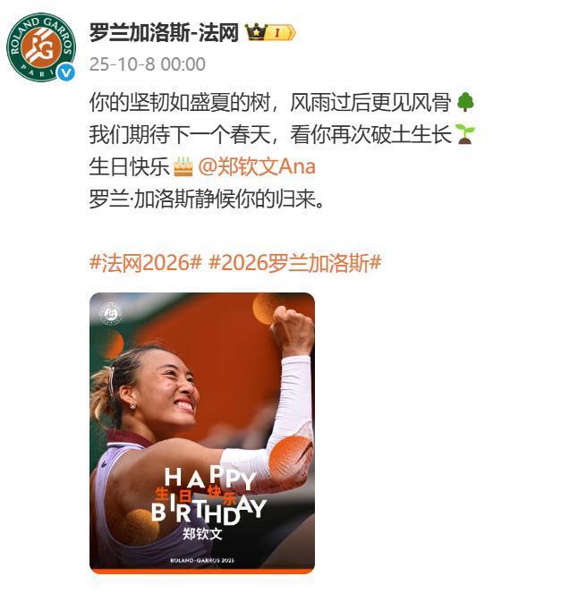球迷表示,什么是牌面,這就是牌面,鄭欽文憑值得。也有細心球迷發現,法網官方社交平臺是在8日凌晨0時卡點發布,“法網有心了,2026年雙向奔赴。”