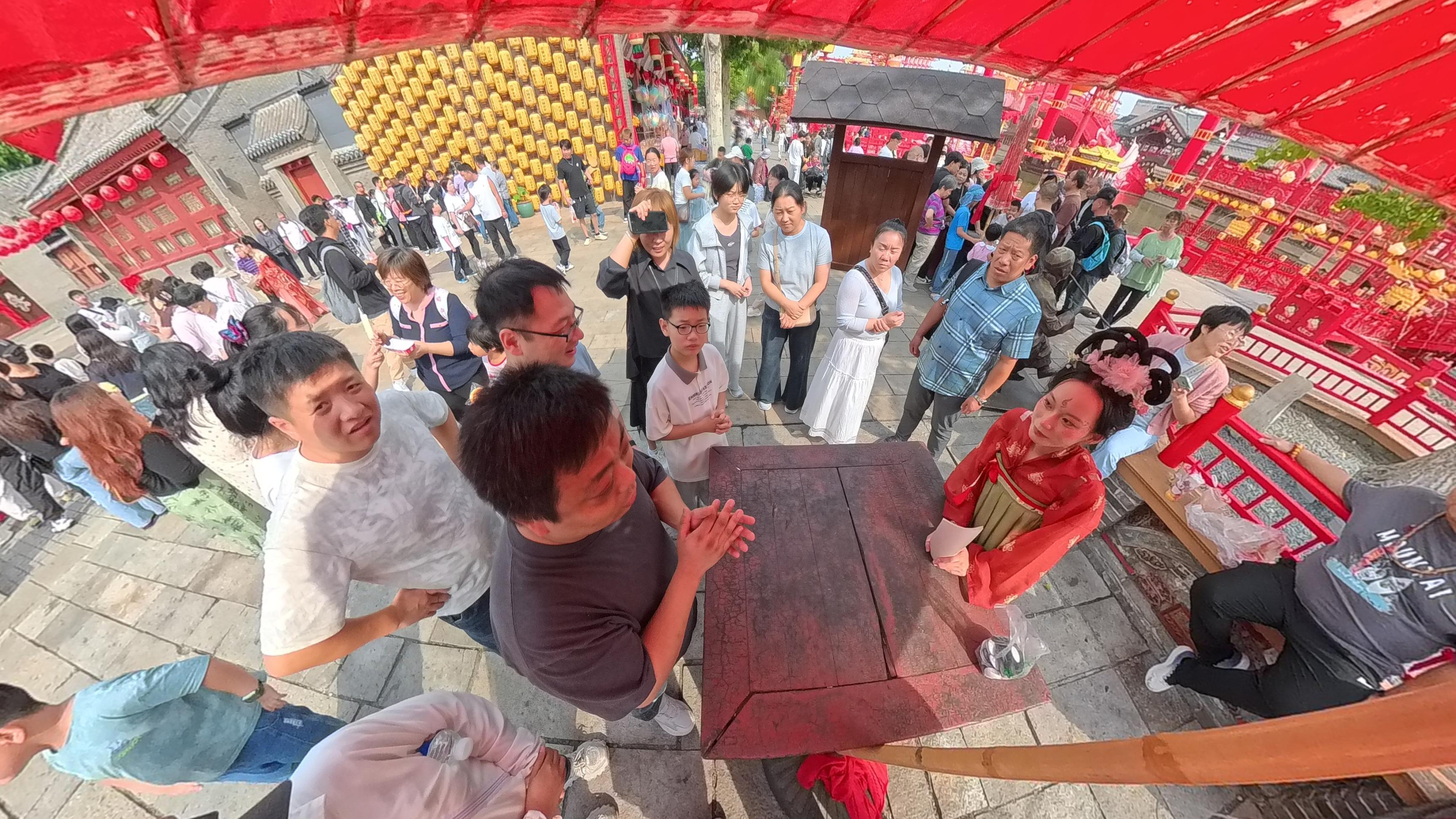 在景區內,身著盛唐服飾的演員們穿梭于古色古香的街巷中,與游客展開豐富多彩的互動。游客通過參與五子棋對弈、趣味猜數字、歷史知識問答等特色游戲,每完成一項挑戰就能獲得相應面額的“銀票”。這些“銀票”不僅是互動成果的見證,更可在老街的專屬兌換處換取特色禮物。這種創新推出的“銀票互動機制”,讓游客在游玩過程中既收獲了樂趣,又增添了成就感,深受廣大游客的認可和喜愛,成為景區內的一道獨特風景線,玩出了文旅體驗的新風潮。