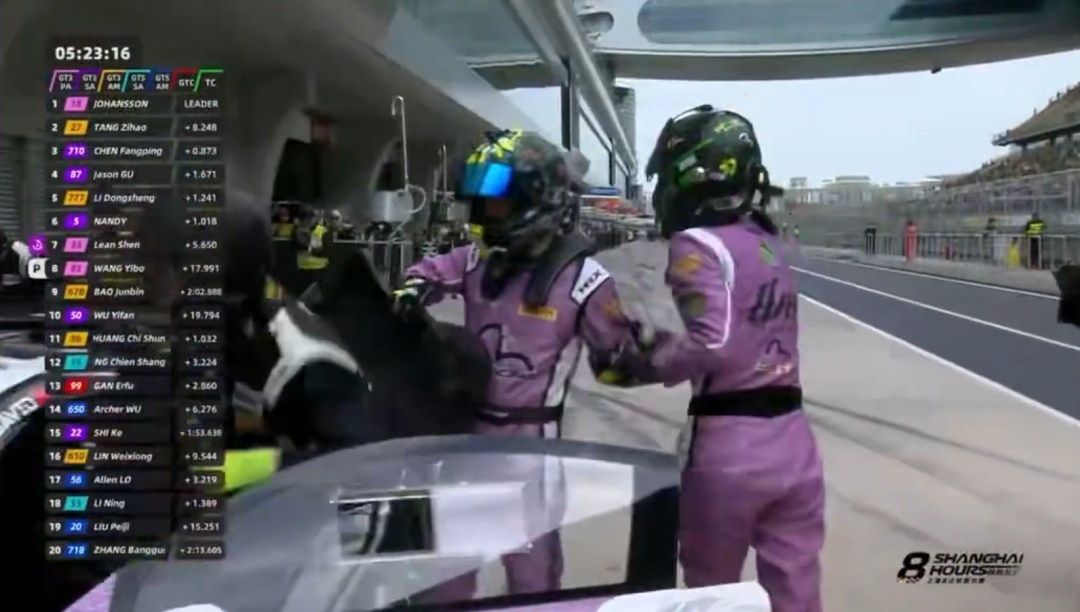 此時,上海8小時耐力賽已進行了三分之二賽程。解說提到,長時間的比賽,需要車手用大量體力和專注度去完成駕駛。