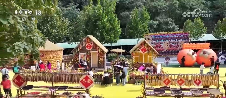 跟隨鏡頭,我們一起來到位于西部太行山區(qū)的河北武安市七步溝景區(qū),一場(chǎng)以“秋山草堂·曬秋場(chǎng)”為主題的傳統(tǒng)曬秋活動(dòng)正在舉行,數(shù)十種太行山原生農(nóng)作物沿山勢(shì)鋪展,火紅的辣椒串垂掛在曬架下,串串飽滿;金黃的玉米棒堆成小山,顆粒分明;橙紅的柿子與竹匾里晾曬的南瓜、核桃、花生相映成趣,構(gòu)成一幅色彩濃烈的秋日豐收?qǐng)D。國慶假期,景區(qū)日均接待游客量較平日增長(zhǎng)3倍。