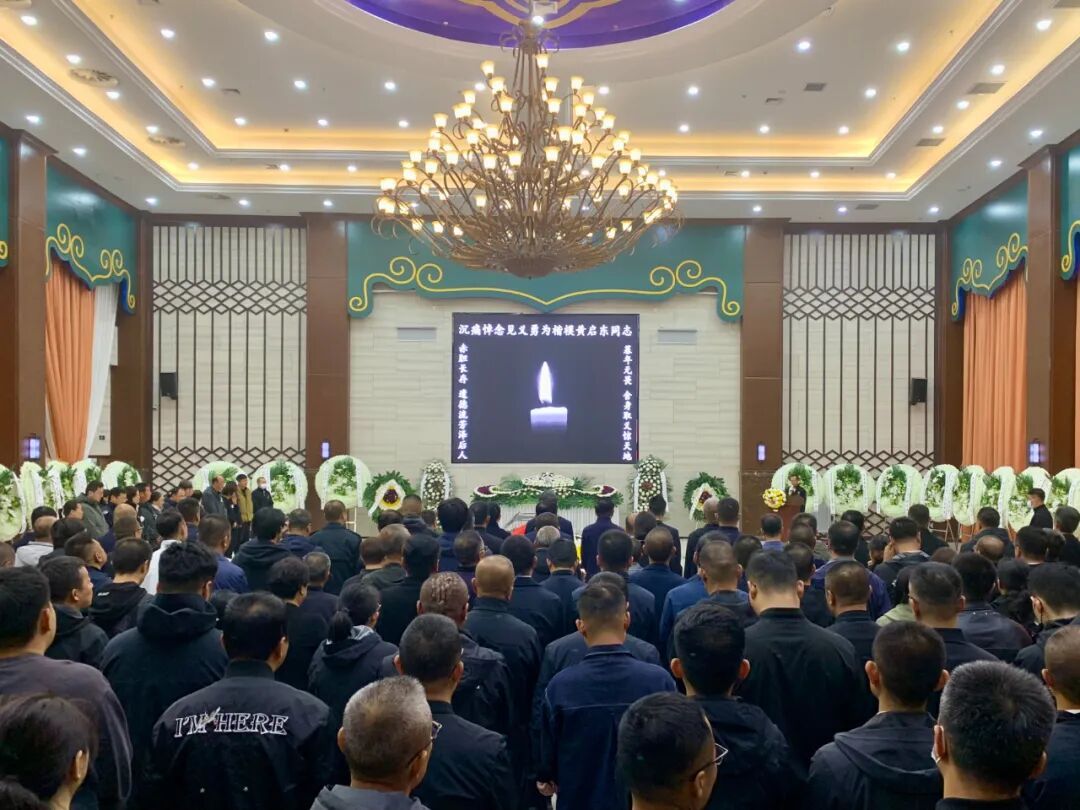 大廳中央,擺放著黃啟東同志的遺像。照片里的他,目光溫和中透著堅韌,唇角帶著熟悉的微笑,一如往日謙和敦厚。遺像上方,“沉痛悼念見義勇為楷模黃啟東同志”幾個大字,訴說著所有人難掩的心碎和不舍。