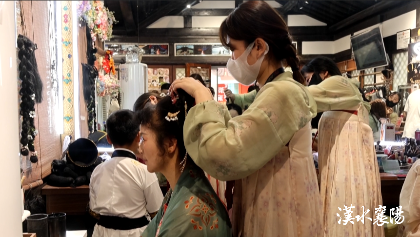 富有盛唐風情的襄陽唐城景區,已成為300多部影視作品的取景地。從《夢華錄》到《慶余年》,從《國色芳華》到《長安的荔枝》,每部熱播劇的話題與流量飆升時,唐城景區都會迎來一波“潑天的富貴”。《長安的荔枝》上線熱映之際,唐城景區順勢推出“影視打卡地圖”,多家漢服店同步上線影視同款妝造、跟拍服務。貞觀霓裳漢服中心營銷主管宋春燕告訴記者,劇中同款妝造,在她這里都可以復刻,現在網上訂購同比增長15%。