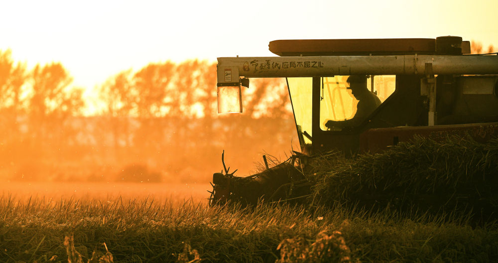 10月3日,農戶在北大荒集團黑龍江八五六農場有限公司第五管理區搶收水稻(無人機照片)。新華社發(黃永興攝)