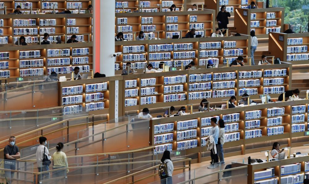 10月5日,市民在北京城市圖書館內讀書。新華社記者 李欣 攝