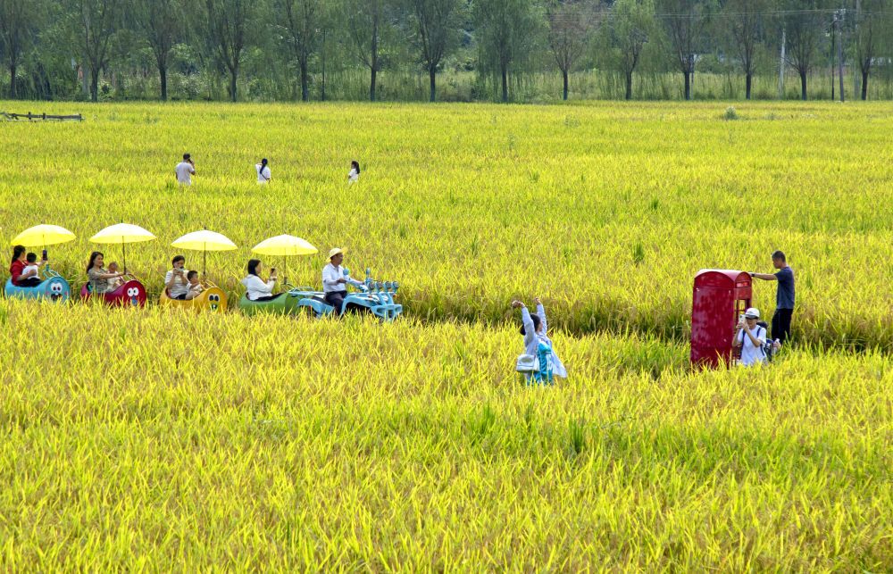 10月5日,游客在湖北省恩施市白果鄉“塘里堂外”農文旅田園綜合體游覽。新華社發(譚華攝)