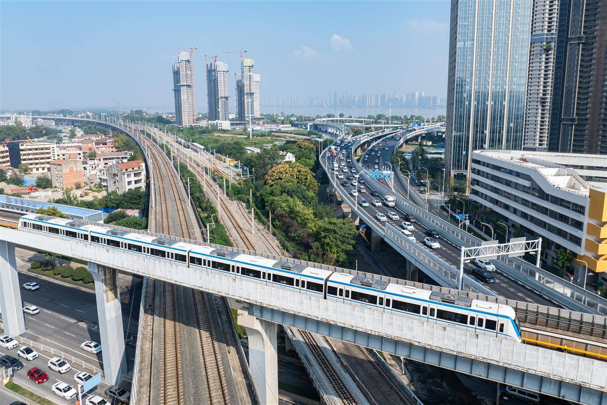 10月8日,在武漢解放大道通往二七長江大橋上橋匝道處拍攝的地鐵、高鐵、汽車同框。武漢,這座被長江與漢江自然分割為 “三鎮(zhèn)鼎立” 的城市,依托 “九省通衢” 的地理稟賦,構(gòu)建起以地鐵、高鐵、城市道路為核心,多維度交織、跨江河聯(lián)動的立體交通體系。從地下穿江隧道到空中橋梁集群,從市內(nèi)微循環(huán)到全國乃至全球的快速通達(dá),交通網(wǎng)絡(luò)如同城市的 “血管”,支撐起三鎮(zhèn)融合與區(qū)域樞紐功能的高效運轉(zhuǎn)。(湖北日報全媒記者 柯皓 攝)