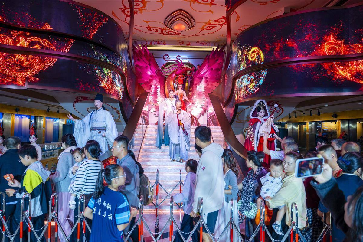 在屈原故里秭歸,“九歌巷子”沉浸式楚風市井街區(qū)國慶正式開街。《九歌·神兮歸來》巡游隊伍中,屈原、楚王等角色從詩篇中走出,與游客親密互動。