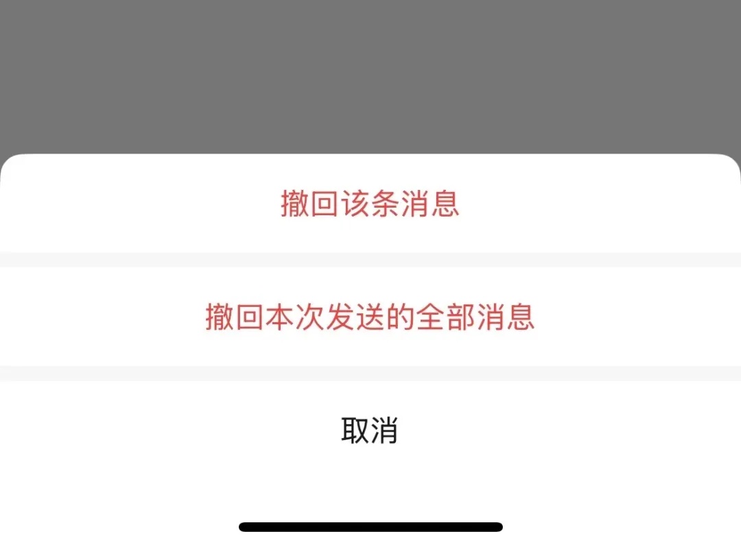 也就是說新增了“撤回本次發送的全部消息”選項,點擊后就能直接一次性撤回本次發送的全部消息,不需要逐條操作撤回。