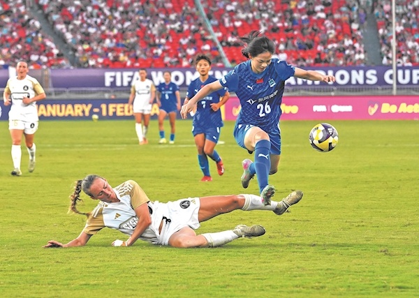首屆國際足聯女足冠軍杯預選輪8日在武漢體育中心打響。亞足聯女足俱樂部冠軍聯賽新科冠軍武漢車谷江大女足,以1:0力克大洋洲女足冠軍聯賽冠軍奧克蘭聯,成功晉級下一輪。楚天都市報極目新聞記者肖顥攝