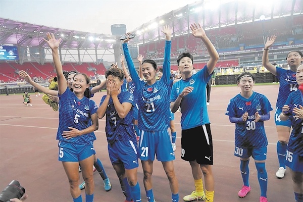 贏球后武漢女足隊員向球迷致謝 楚天都市報極目新聞記者肖顥攝