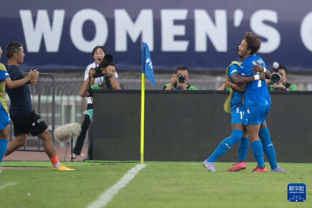 10月8日,武漢車谷江大隊球員王霜(右)進球后與隊友慶祝,但隨后該進球被判無效。