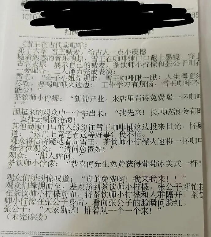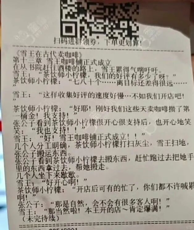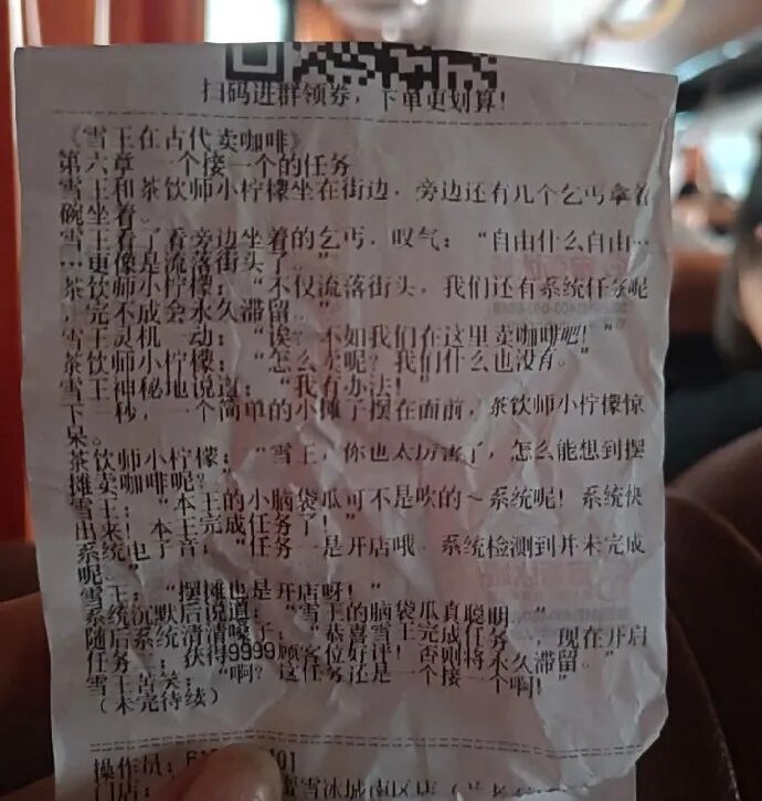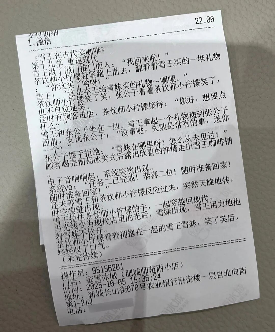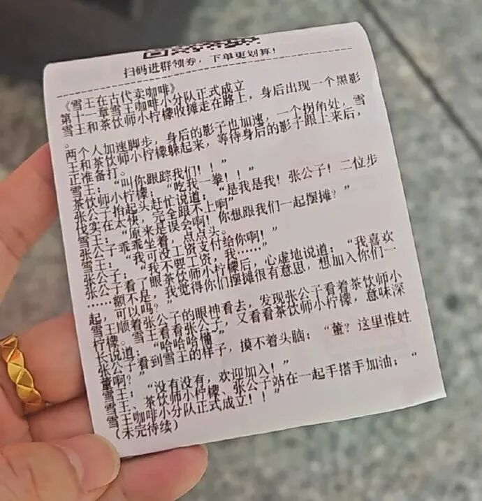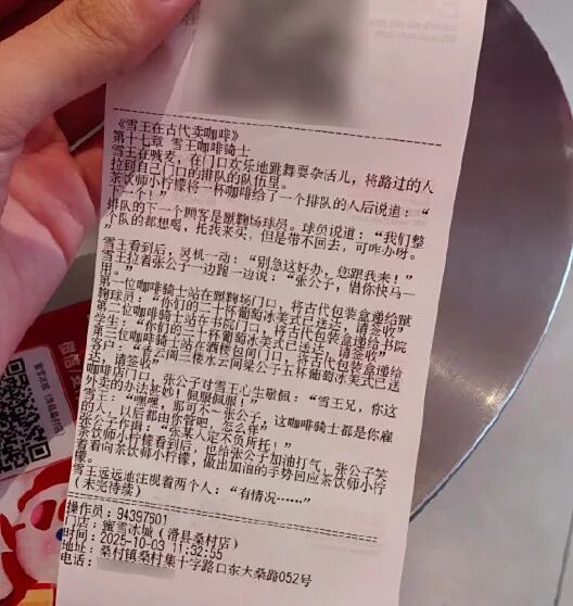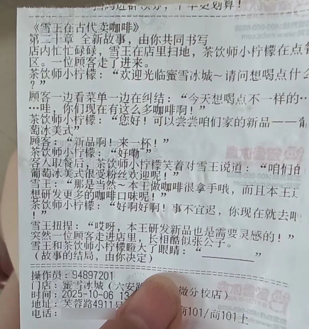 此前,“蜜雪冰城小票藏連載小說”引發熱議。