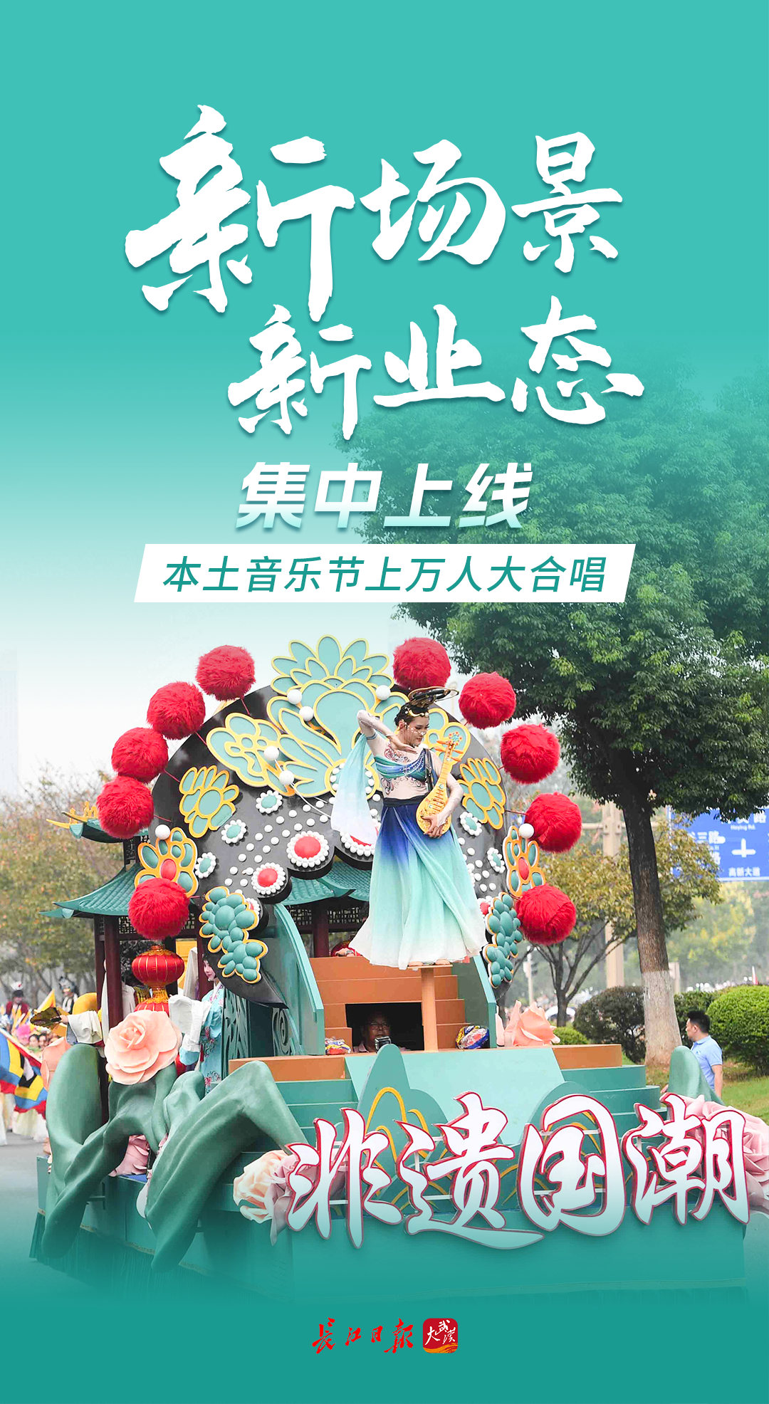 “河山添錦繡——文旅IP武漢城市大巡游”于10月1日在武漢光谷開游,23臺主題花車,融合全國各地特色民俗、非遺項目的38家國內外頂尖演藝團隊聯袂獻藝,近10萬市民游客現場觀看,來鄂游客大呼“來得值”。