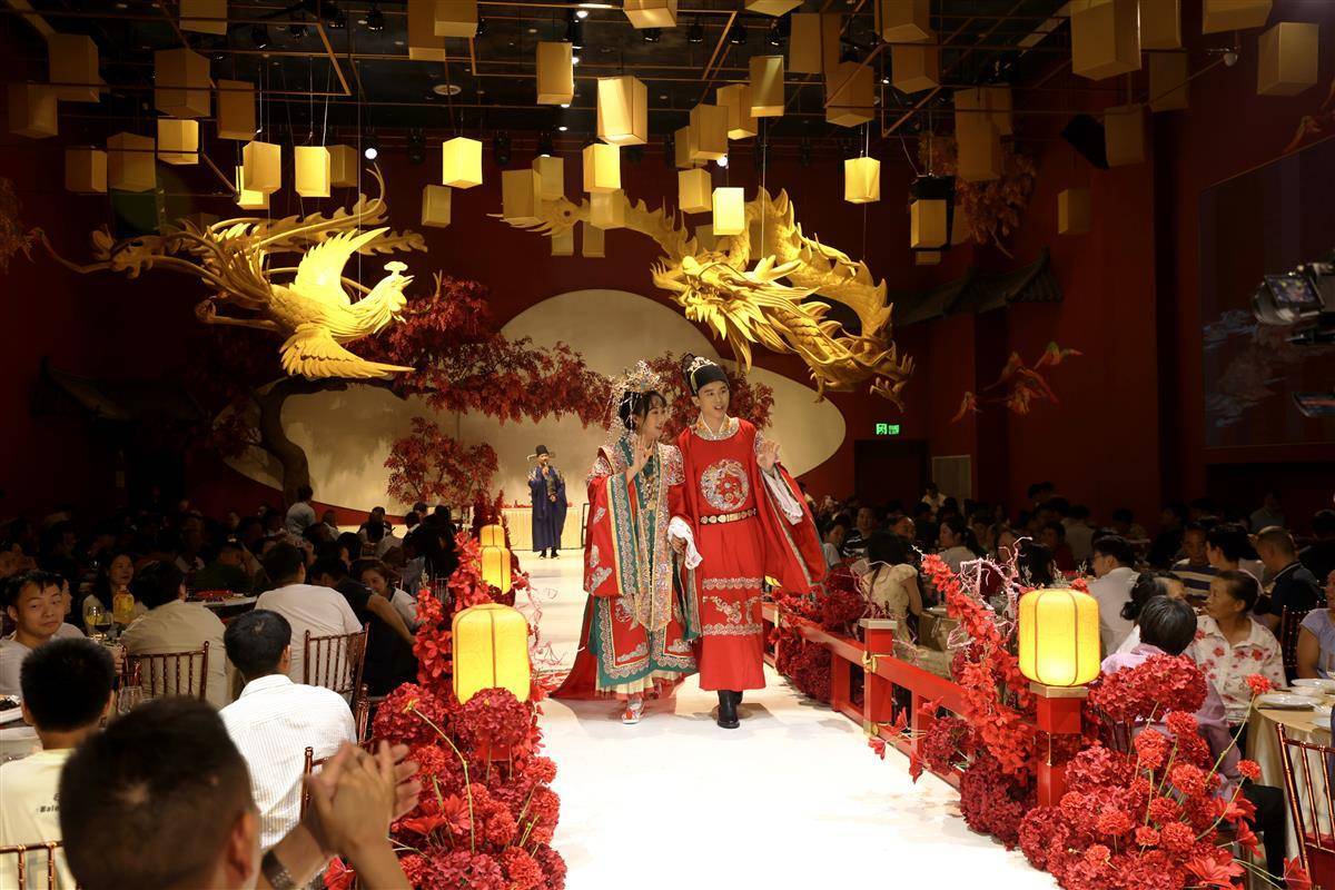 10月1日的大冶市天鵝禮宴中心,掛滿紅綢的大廳彌漫著桂花香。藏族姑娘索朗卓嘎戴上鳳冠,穿上繡有并蒂蓮裙擺的鳳冠霞帔,眼里滿是歡喜。“以前總聽長輩說‘緣分天定’,而我的緣分是‘崗位’牽來的。”她笑著轉頭,正好對上一旁的新郎鄭自國的目光。