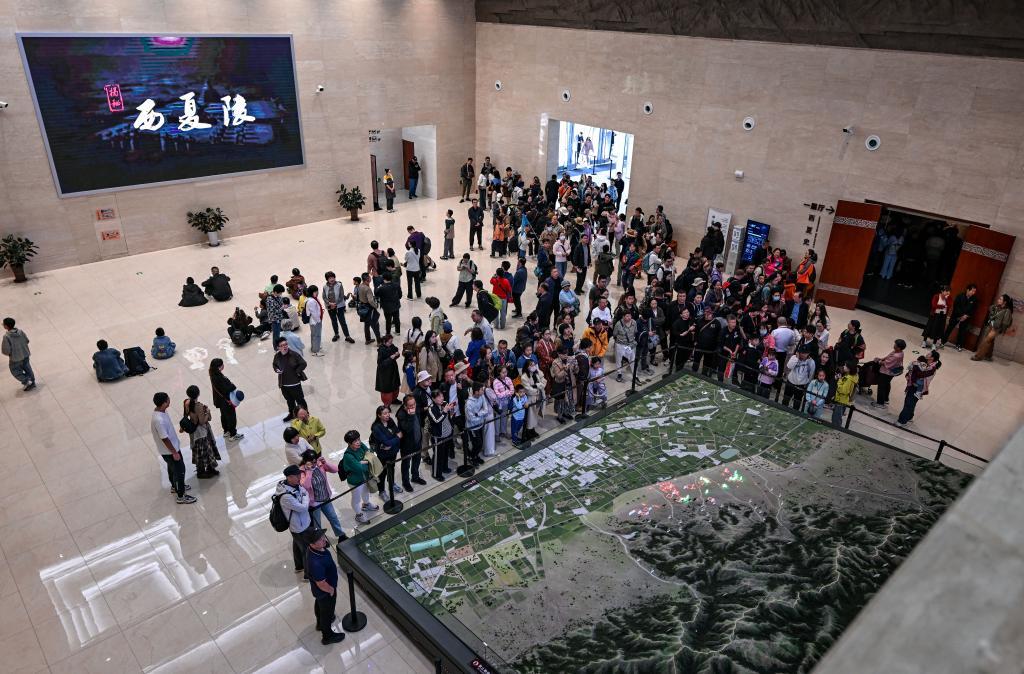 10月2日,游客在寧夏銀川市的西夏陵博物館參觀。新華社記者 馮開華 攝