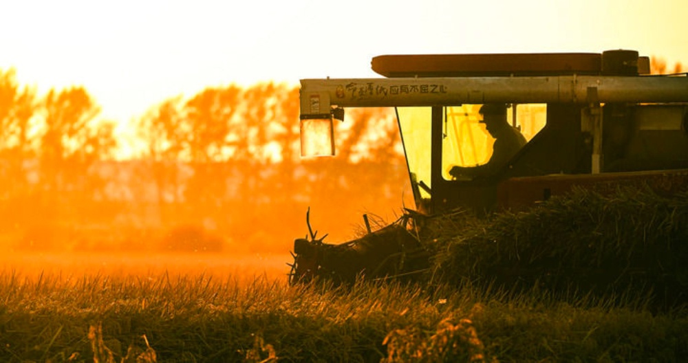 10月3日,農戶在北大荒集團黑龍江八五六農場有限公司第五管理區搶收水稻(無人機照片)。國慶中秋假期,大江南北,許多勞動者堅守崗位、辛勤工作,默默奉獻。新華社發(黃永興攝)