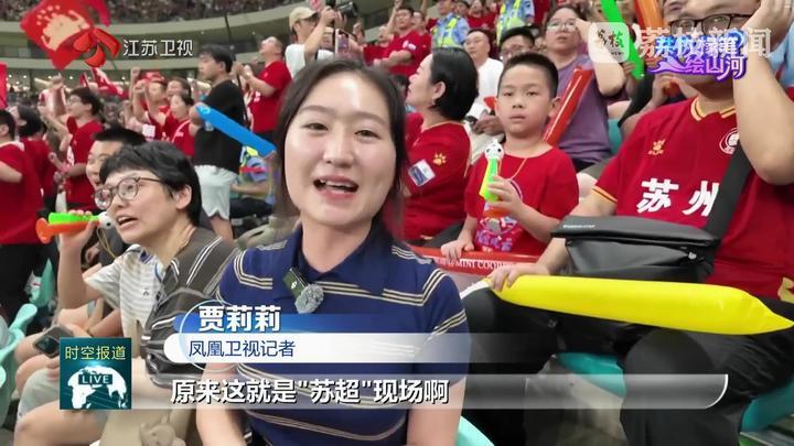 鳳凰衛視記者賈莉莉說:“我終于搶到‘蘇超’的門票了!‘蘇超’現場太激動人心了,專業級的賽場坐滿了球迷,加油聲、助威聲震耳欲聾。好鐘意江蘇,這里好棒、好靚啊!”