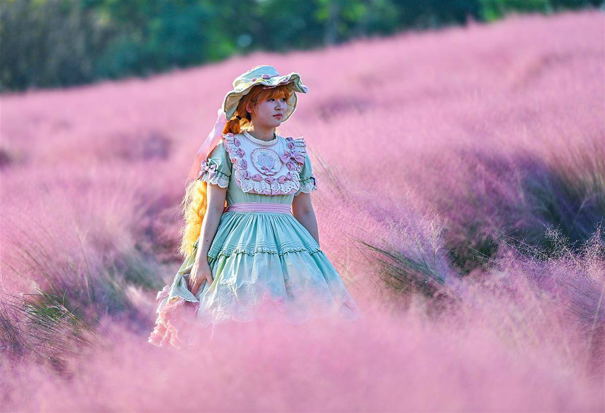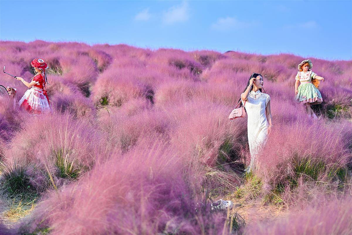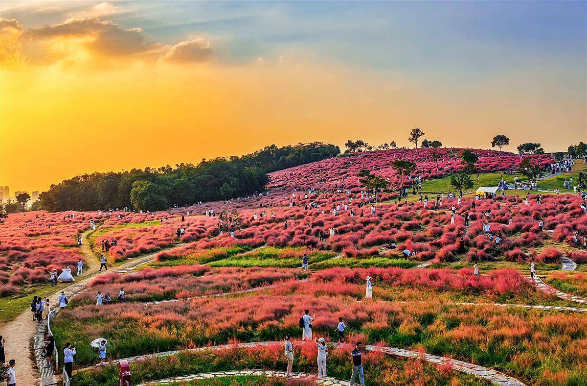 10月8日下午,許多市民游客抓住國慶長假最后一天,紛紛來到武漢光谷二妃山花海,欣賞日落美景,感受如云似霧的粉色浪漫。此處,被網友稱為出片率100%的網紅打卡地。(湖北日報全媒記者 朱熙勇 攝)