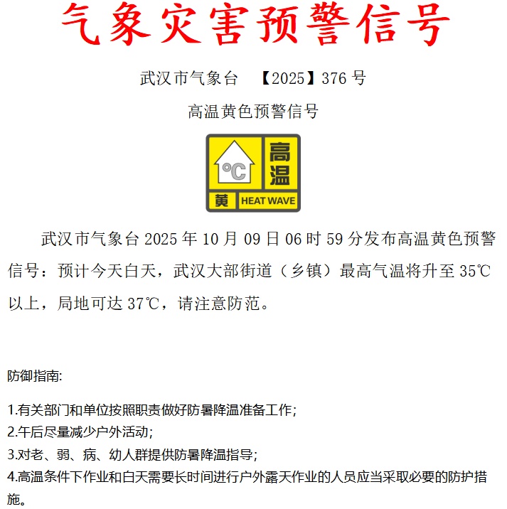 高溫黃色預警信號