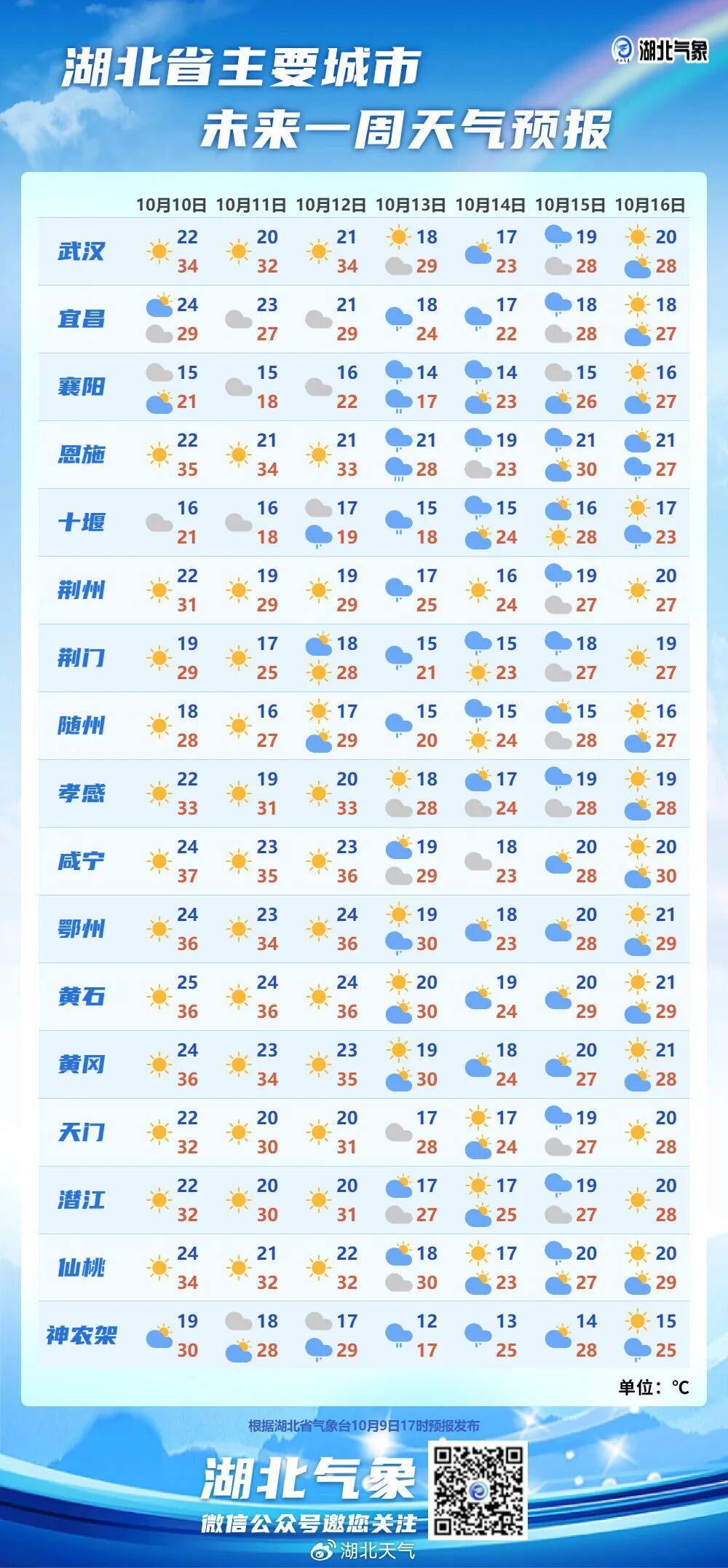 據武漢市氣象臺最新天氣周報