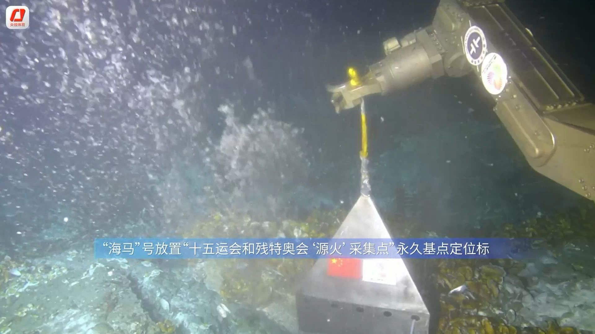 采集“源火”后,科研人員通過“海馬”號在海底采集點(diǎn)位放置“十五運(yùn)會與殘?zhí)貖W會‘源火’采集點(diǎn)”永久基點(diǎn)定位標(biāo),紀(jì)念這次具有開創(chuàng)性的“源火”采集行動。
