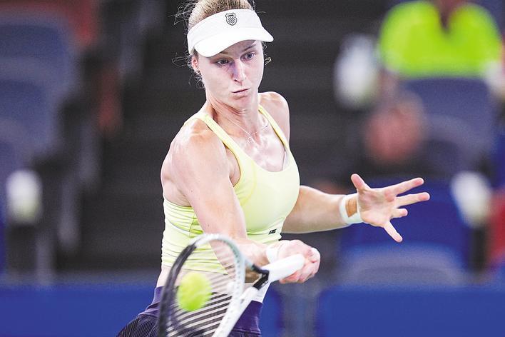 10月9日,薩姆索諾娃在比賽中發球。(湖北日報全媒記者 任勇 攝)