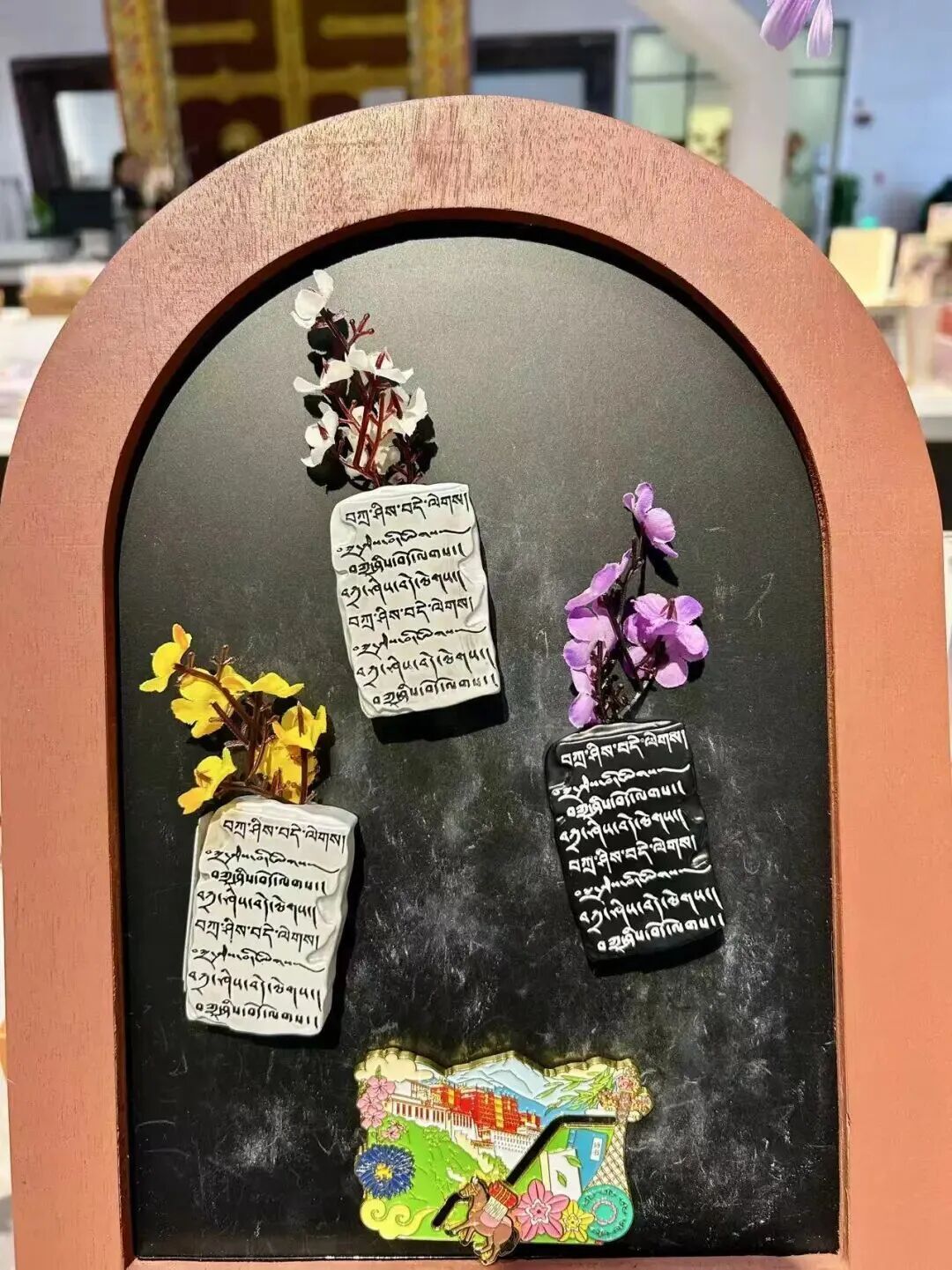 在社交平臺(tái)上,西藏博物館的花瓶款冰箱貼火出了圈?!氨刭I”“太絕了”——網(wǎng)友們的評(píng)價(jià)道出了它的獨(dú)特魅力。黑白兩色的設(shè)計(jì),巧妙融入了插花功能,創(chuàng)意源自西藏傳統(tǒng)石刻藝術(shù)與吉祥祝福語(yǔ)?!霸鞯吕铡辈寤ū滟N,不僅是一件文創(chuàng)產(chǎn)品,更是對(duì)美好生活最真誠(chéng)的祝愿。