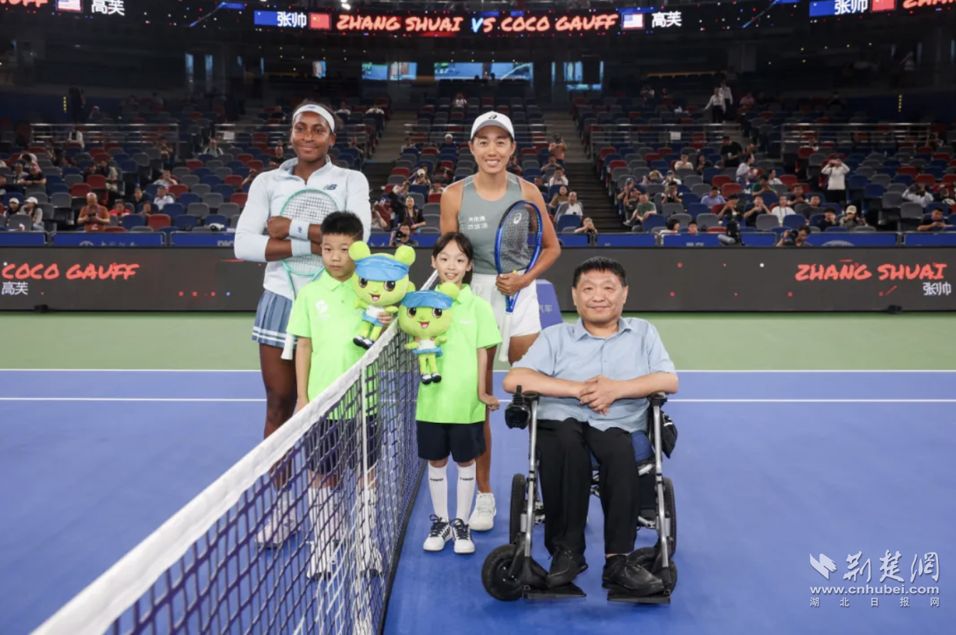 隨著挑邊儀式結束,張帥與高芙的對決正式拉開帷幕。賽場上,張帥頑強拼搏的勁頭,與李筠展現的自強精神形成動人呼應,現場觀眾程先生由衷感慨:“在網球的藍天下,運動員的活力、特殊群體的堅韌、孩童的朝氣交織成一幅動人畫卷,每一份參與都是對體育精神的生動詮釋,讓熱愛在這片賽場熠熠生輝。”賽場外,李筠的參與為武網注入溫暖的人文底色,讓這場國際賽事成為展現武漢殘疾人風采、推動殘健深度融合的重要窗口。
