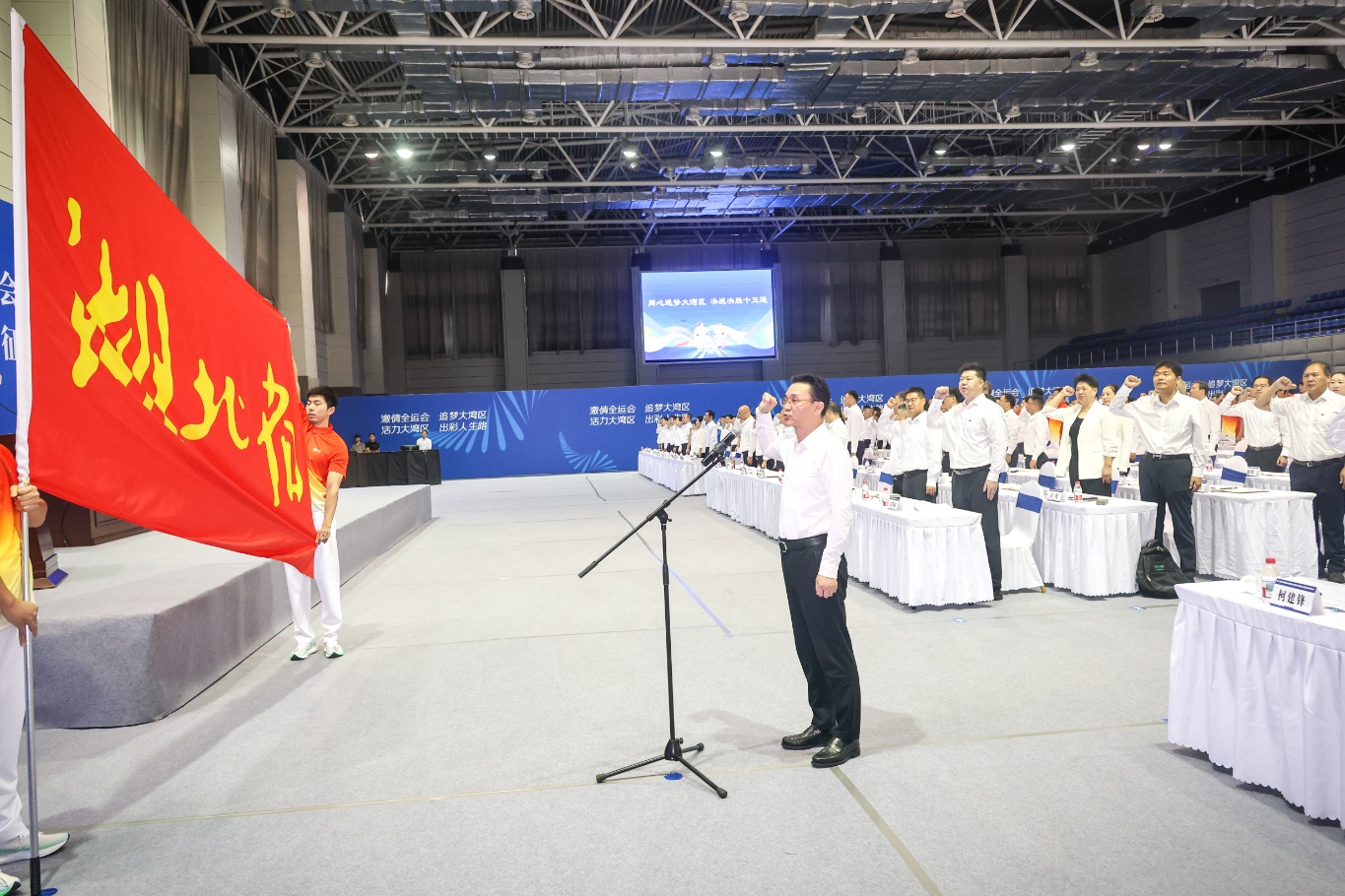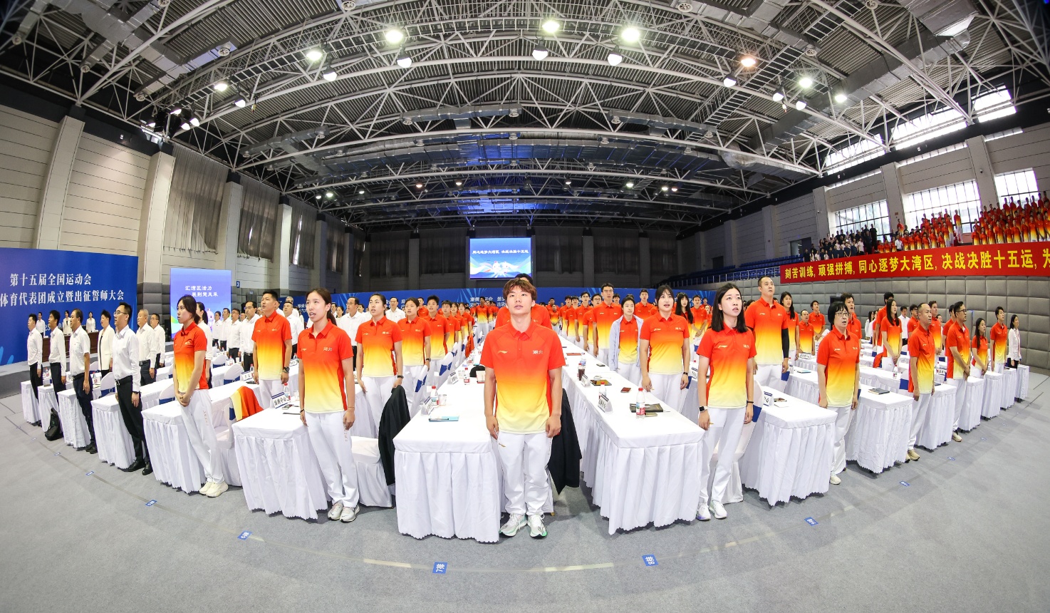 “我宣誓,我光榮地參加第十五屆全運會,我將勇于擔當,頑強拼搏,團結協作,勇創佳績,賽出風格賽出水平,堅決遵守賽風賽紀,堅決反對興奮劑,力爭運動成績與精神文明雙豐收,為全運爭輝,為湖北添彩。”成立大會上,湖北體育健兒的錚錚誓言響徹全場。他們立志在粵港澳全運會舞臺高揚荊楚旗幟,為湖北建成中部地區崛起重要戰略支點貢獻體育力量!