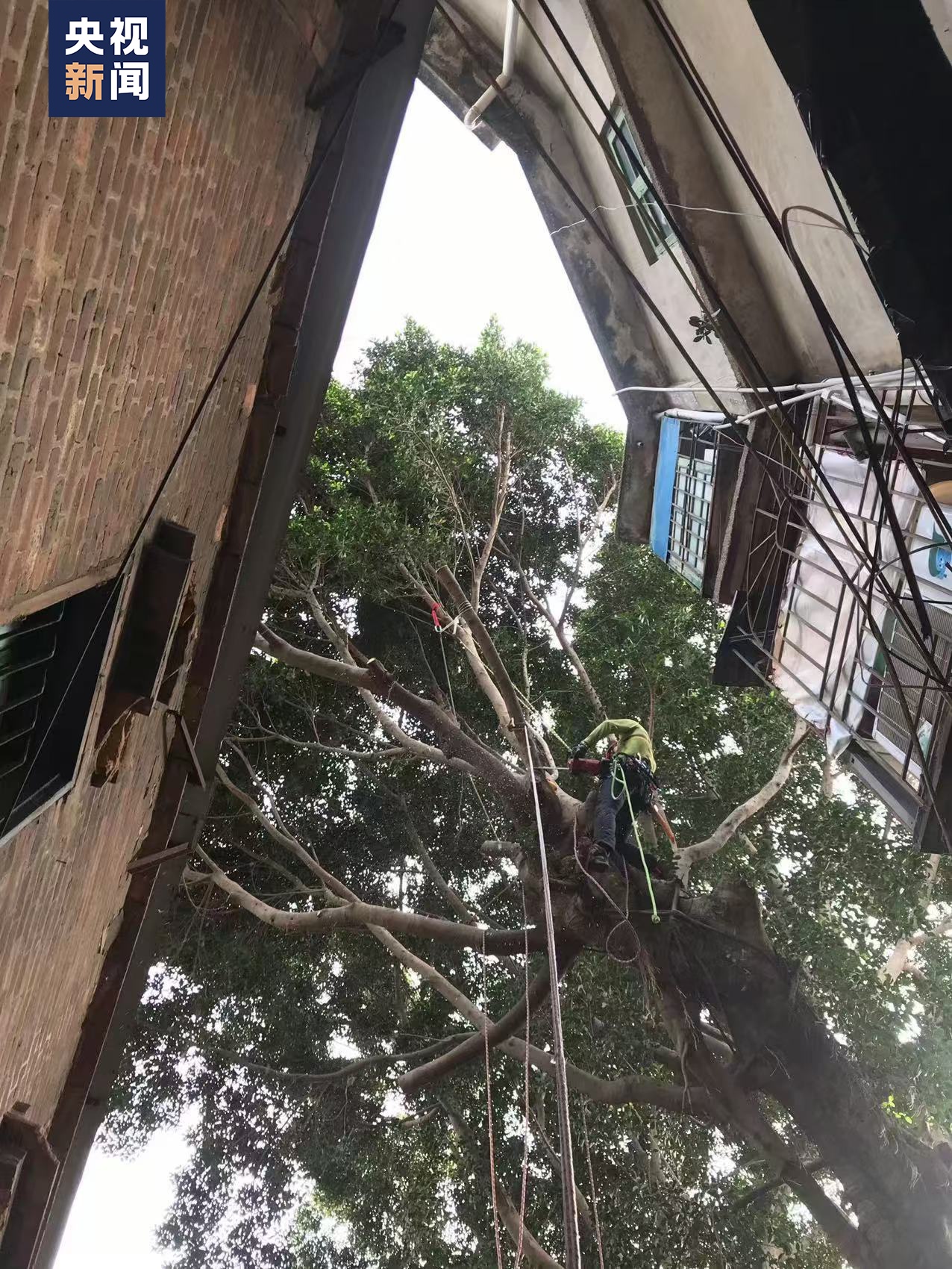 但常年生活在榕樹之下,遮天蔽日,導致周邊房屋潮濕發霉。這時,就需要攀樹師上樹修剪。
