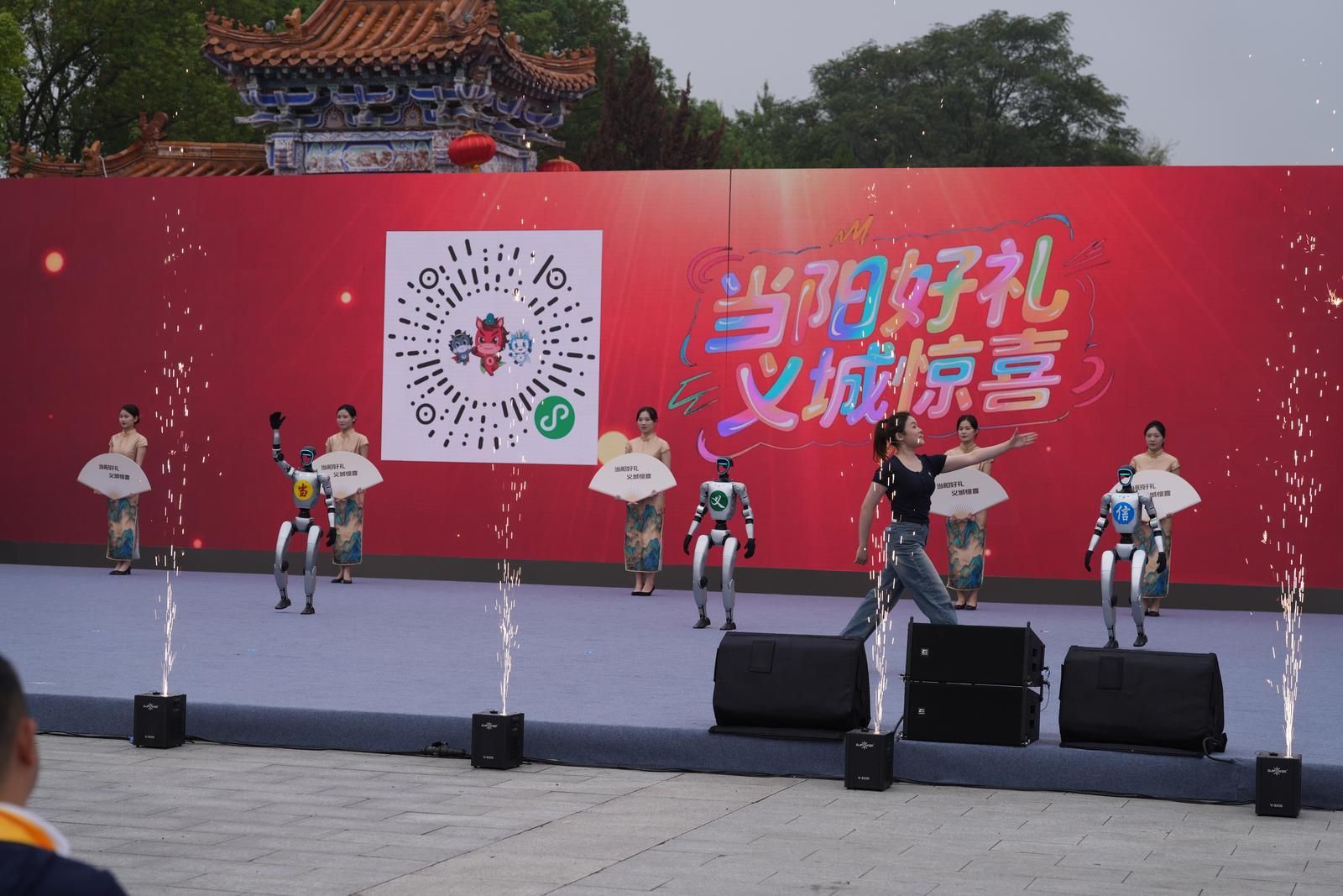 當陽街頭,潮汕英歌舞擂響戰鼓,三國人物Cosplay穿梭于人群,AI機器人化身“關公文化使者”講述城市新貌。傳統與現代在此交鋒,迸發出驚人的感染力。