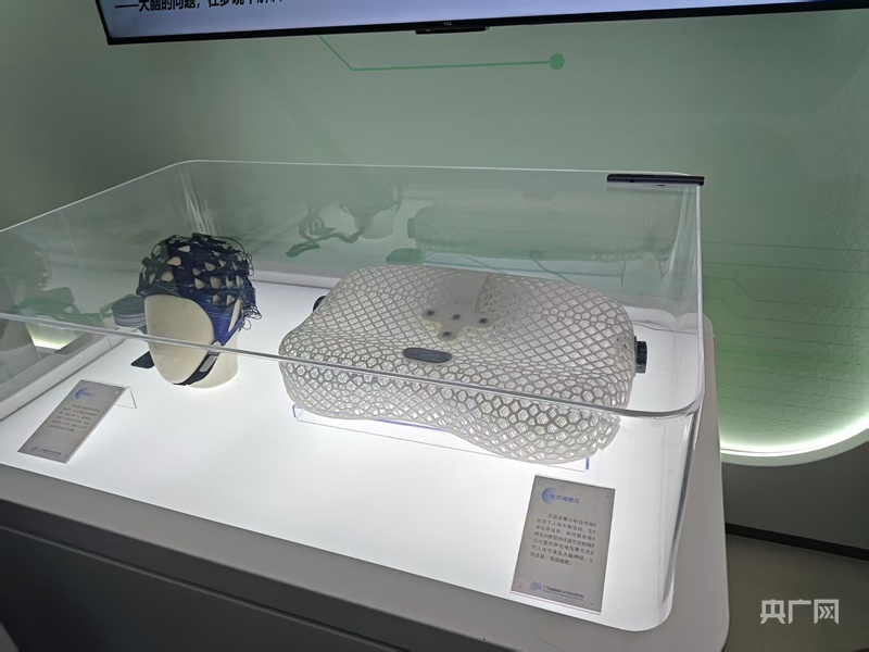 在展廳里,記者看到了一款特別的“枕頭”——廣東省智能科學與技術研究院與企業聯合研發的首款多模態夢境腦機接口設備“夢鄰”。其通過“枕頭”形態設計,將腦機接口技術與日常睡眠場景結合,為“精準睡眠干預”與“主動健康管理”提供技術工具。