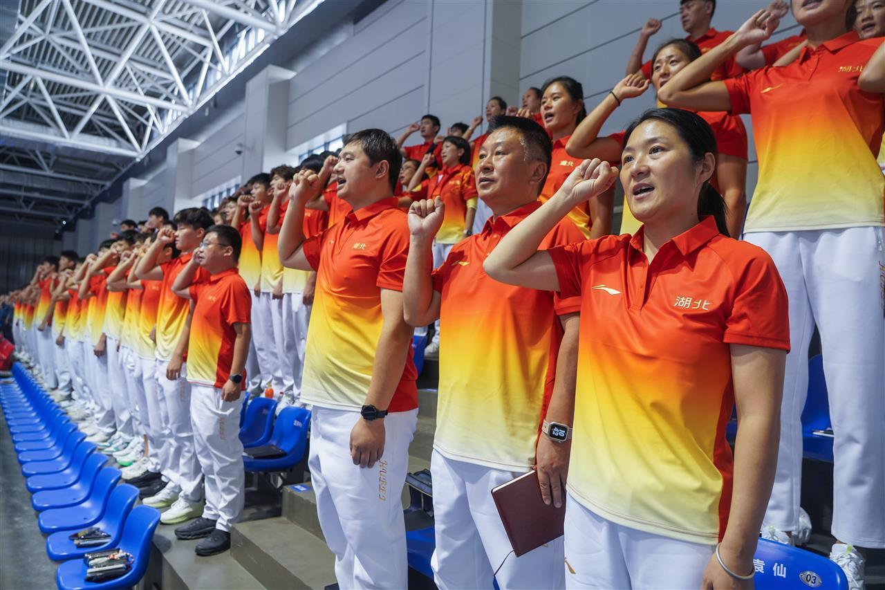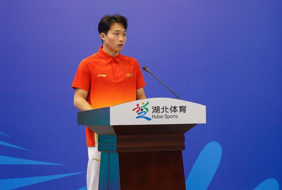 在代表團成立大會現(xiàn)場,奧運冠軍王宗源代表湖北省參賽運動員發(fā)言,他表示:“湖北體育的輝煌,是一代代前輩用拼搏與汗水鑄就的。在大灣區(qū)全運會的賽場上,我們不僅要展現(xiàn)精湛的技戰(zhàn)術水平,更要傳遞湖北健兒敢打敢拼、勇攀高峰的精神風貌。請家鄉(xiāng)人民放心,我們定當全力以赴、勇戰(zhàn)到底,在全運會賽場綻放最美的光彩。”