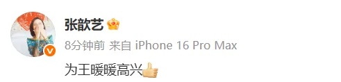 相關話題#王暖暖成功離婚# 登上熱搜引發關注。隨即演員張歆藝發文:為王暖暖高興。她并還在評論區留言,“長出一口氣。”