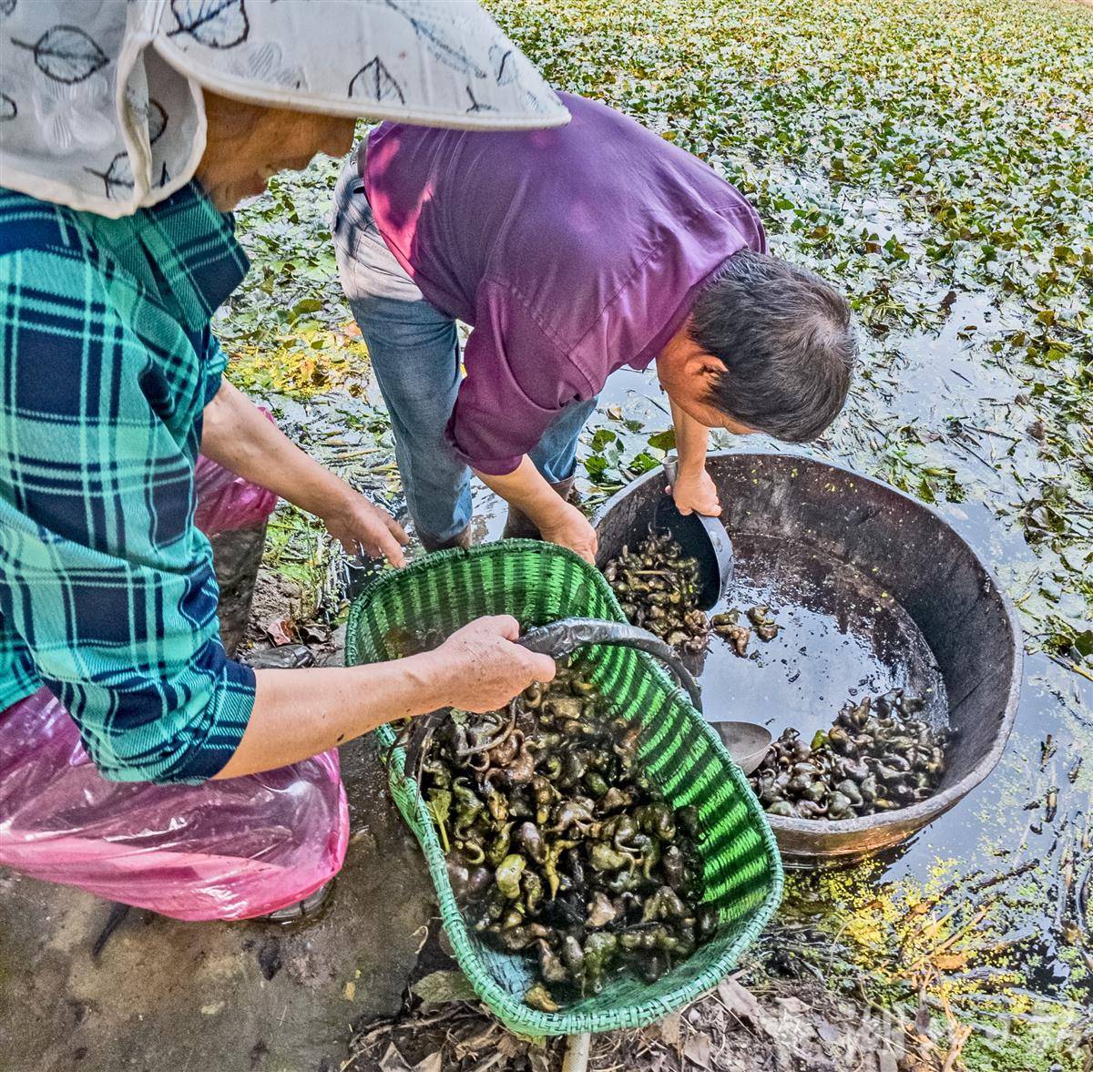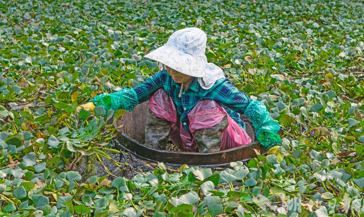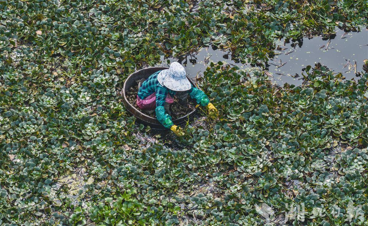 10月9日,記者在枝江市問安鎮(zhèn)龍泉堂村菱角塘看到,連片菱葉如綠色地毯鋪滿水面,農(nóng)民劃著傳統(tǒng)木盆穿梭其間,嫻熟地翻開菱葉、采收飽滿鮮嫩的菱角,田間一派繁忙豐收景象。正在采收菱角的農(nóng)民熊業(yè)林欣說:“今年菱角長勢(shì)特別好,客戶爭(zhēng)相訂購,畝產(chǎn)約1000斤,采收期可持續(xù)至11月份?!?如今,菱角種植不僅成為龍泉堂村的一道亮麗景觀,更成為推動(dòng)當(dāng)?shù)剞r(nóng)業(yè)增效、農(nóng)民增收的重要產(chǎn)業(yè)。據(jù)悉,枝江水域資源豐富,為菱角、茭白、馬蹄、蓮藕等水生蔬菜生長提供了得天獨(dú)厚的條件。近年來,該市大力發(fā)展水生蔬菜種植,目前種植面積已達(dá) 1500 畝,總產(chǎn)量近3000噸,總產(chǎn)值超2100萬元,水生蔬菜產(chǎn)業(yè)規(guī)模不斷擴(kuò)大,為鄉(xiāng)村振興注入強(qiáng)勁動(dòng)力。(湖北日?qǐng)?bào)全媒記者 劉曙松 通訊員 鄭子賢 田雪蓮 攝)
