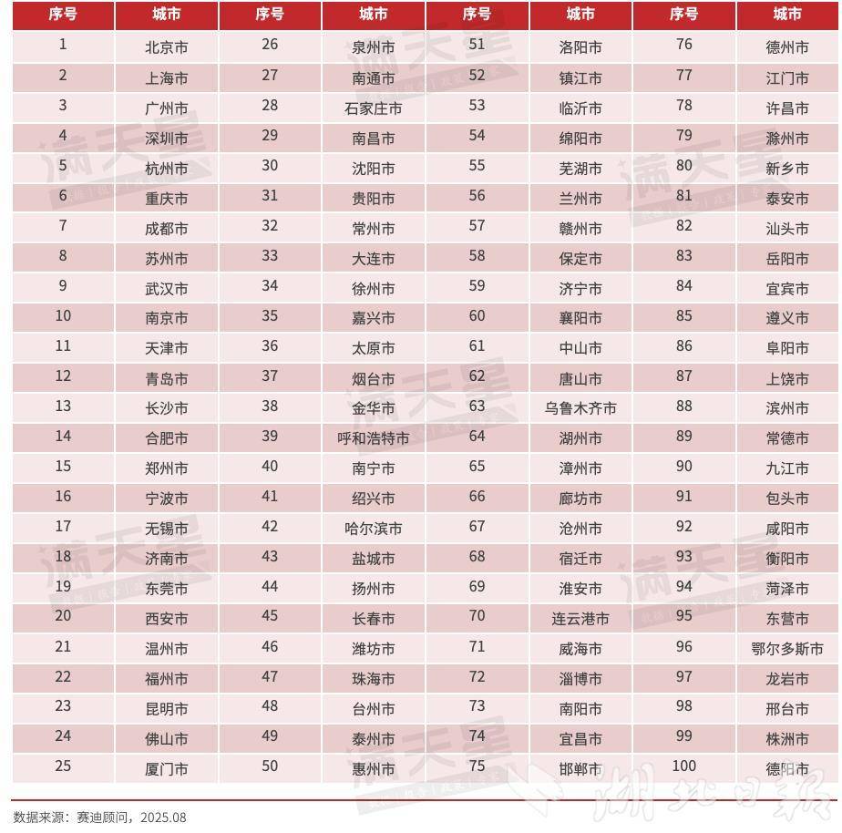 湖北日報訊(記者張倩倩、通訊員王華芬)近日發布的《2025年中國數字城市競爭力研究報告》顯示,武漢在數字經濟百強市榜單中位列全國第9,較上年再提升一個位次,實現連續兩年穩步進位,展現出強勁的發展勢頭。