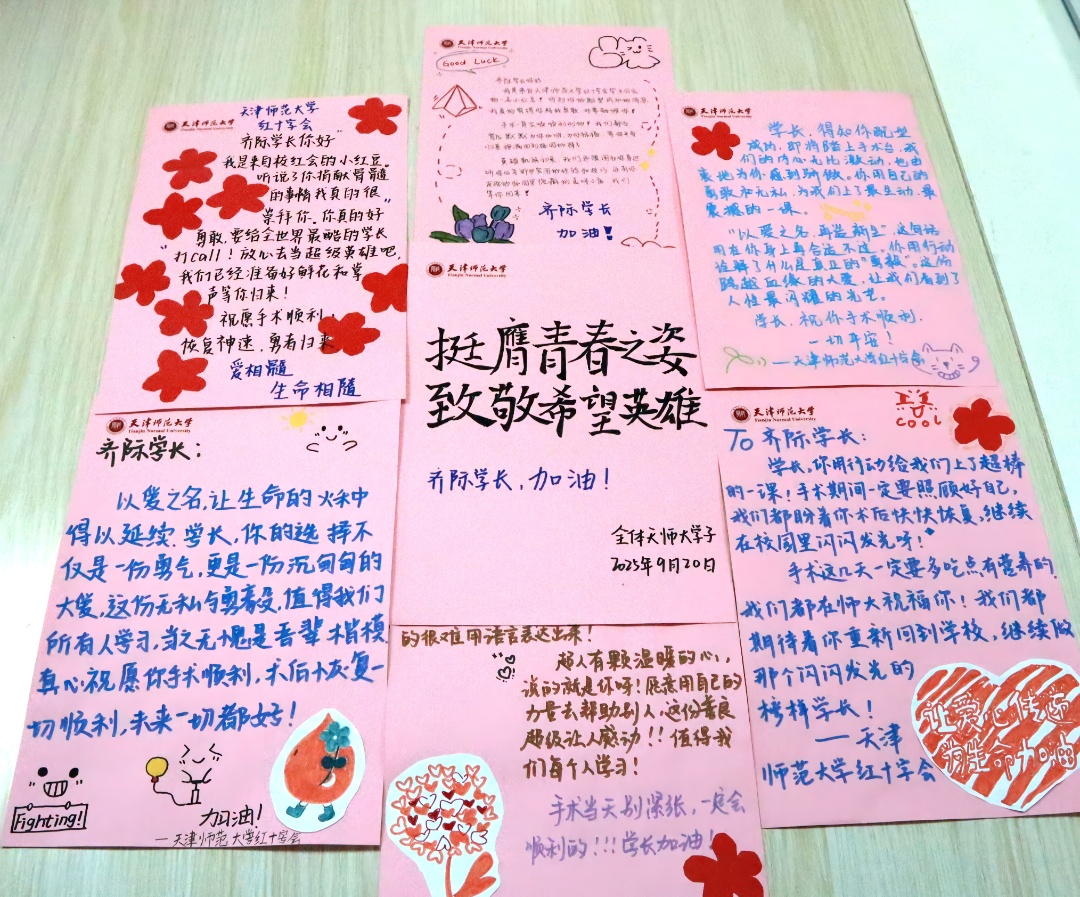 同學(xué)們以信件的方式為齊際加油鼓勁(央廣網(wǎng)發(fā) 天津師范大學(xué)供圖)