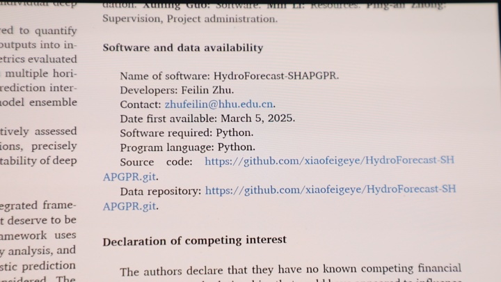 朱非林在學術研究中有一個特別的堅持——公開分享自己的代碼。早在2017年,他就將防洪決策的模型代碼公開,美國、印度及國內的學者紛紛與他聯系,在他開發的模型基礎上進行深化研究,推動了整個方向的發展。"水利行業是造福人民的事業,不應該有圍墻。"朱非林的想法很簡單,一項技術只有被更多人使用、檢驗和完善,才能發揮更大價值,更快推動整個行業進步。個人的工作如果能給其他研究者或工程單位帶來啟發和幫助,其意義就遠超一篇論文本身。
