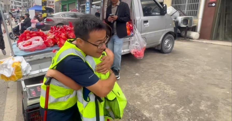 一行人沿途遇到了很多暖心事。有餐館老板給他們送水果,有辦喜事的村民還邀請他們一起吃席。路過村委會,村干部也準許余先生停車,晾曬衣服。