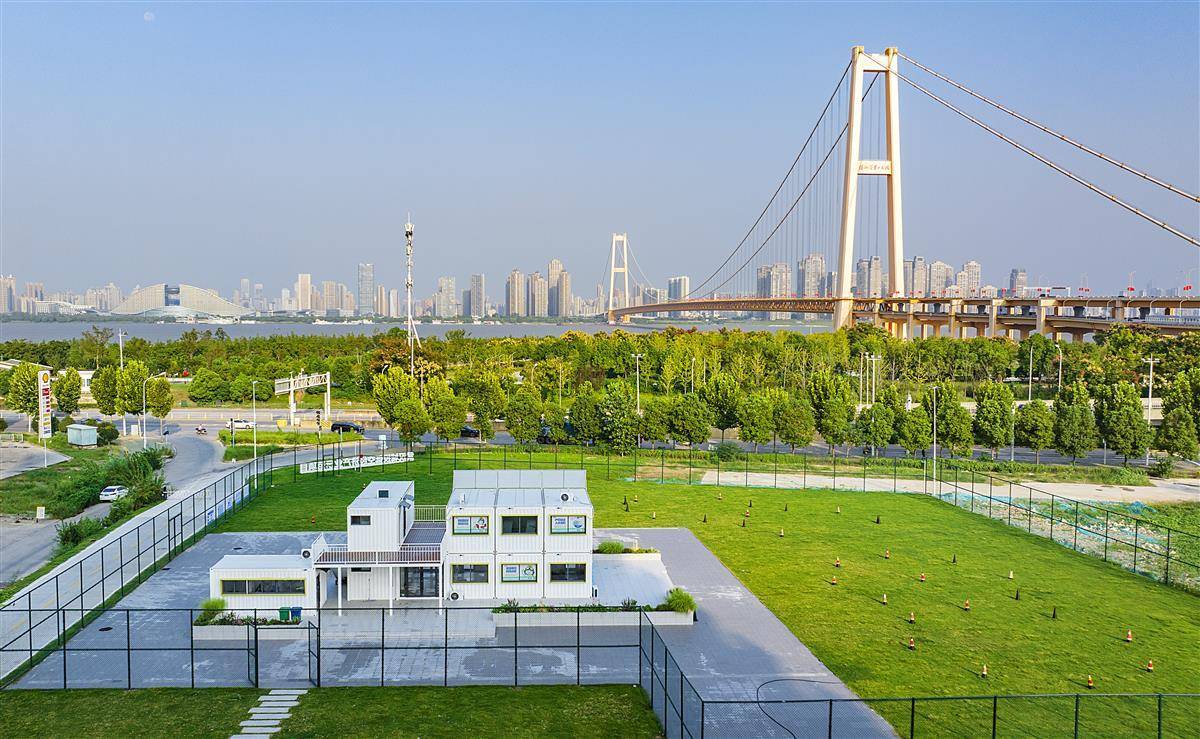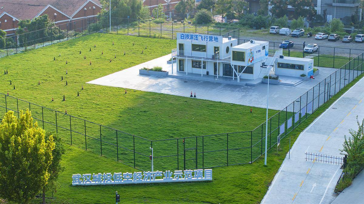 10月10日,鳥瞰已建成投入使用武漢城投低空經(jīng)濟產(chǎn)業(yè)示范項目,項目位于洪山區(qū)武金堤路與楊泗港快速通道交會處,一塊曾空置多年、環(huán)境雜亂的小微地塊,如今已華麗蛻變?yōu)榧療o人機培訓、展示、應(yīng)用于一體的現(xiàn)代化科技場所。(湖北日報全媒記者 朱熙勇 攝)